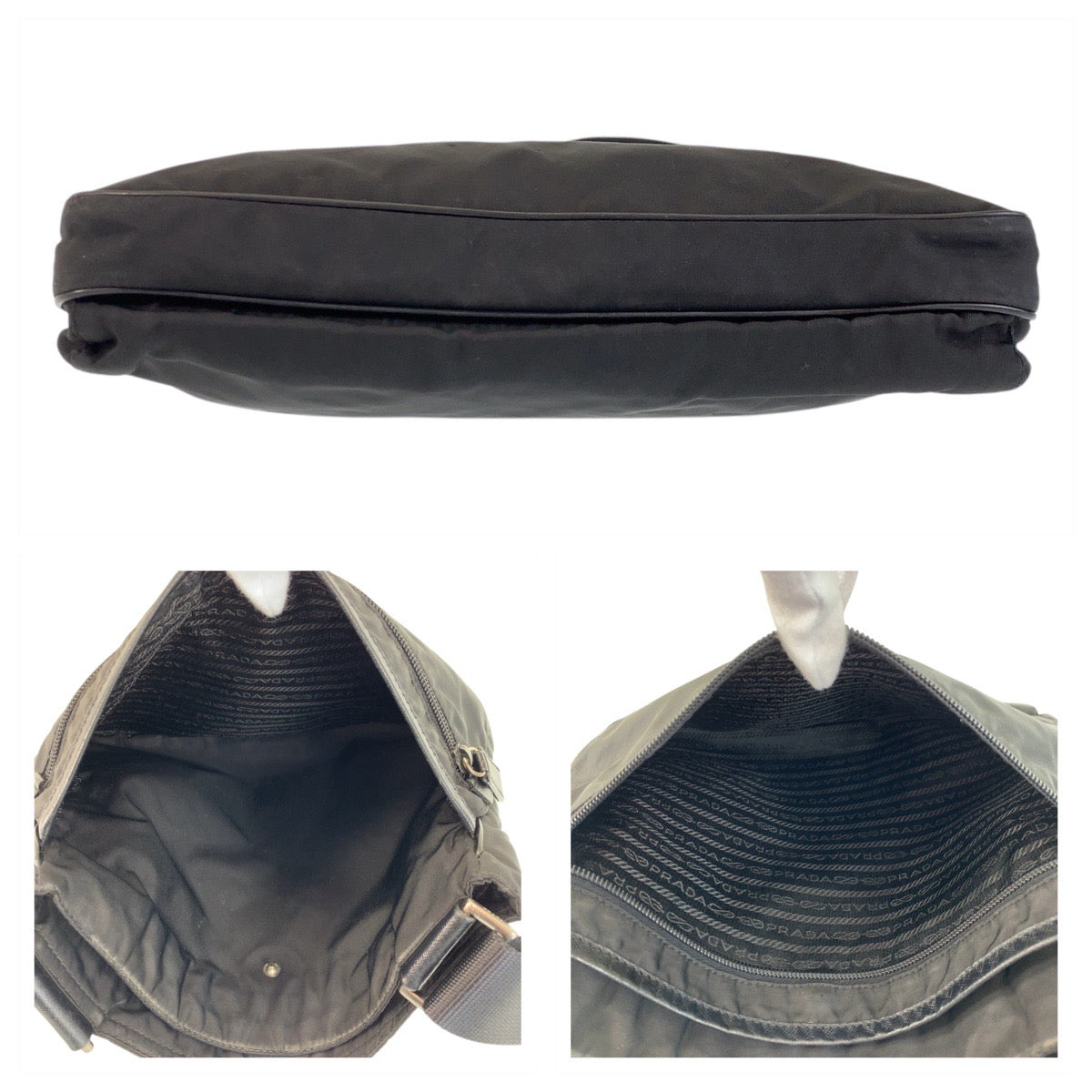 PRADA Shoulder Bag Nylon Black SilverMetal Test Triangle With logo