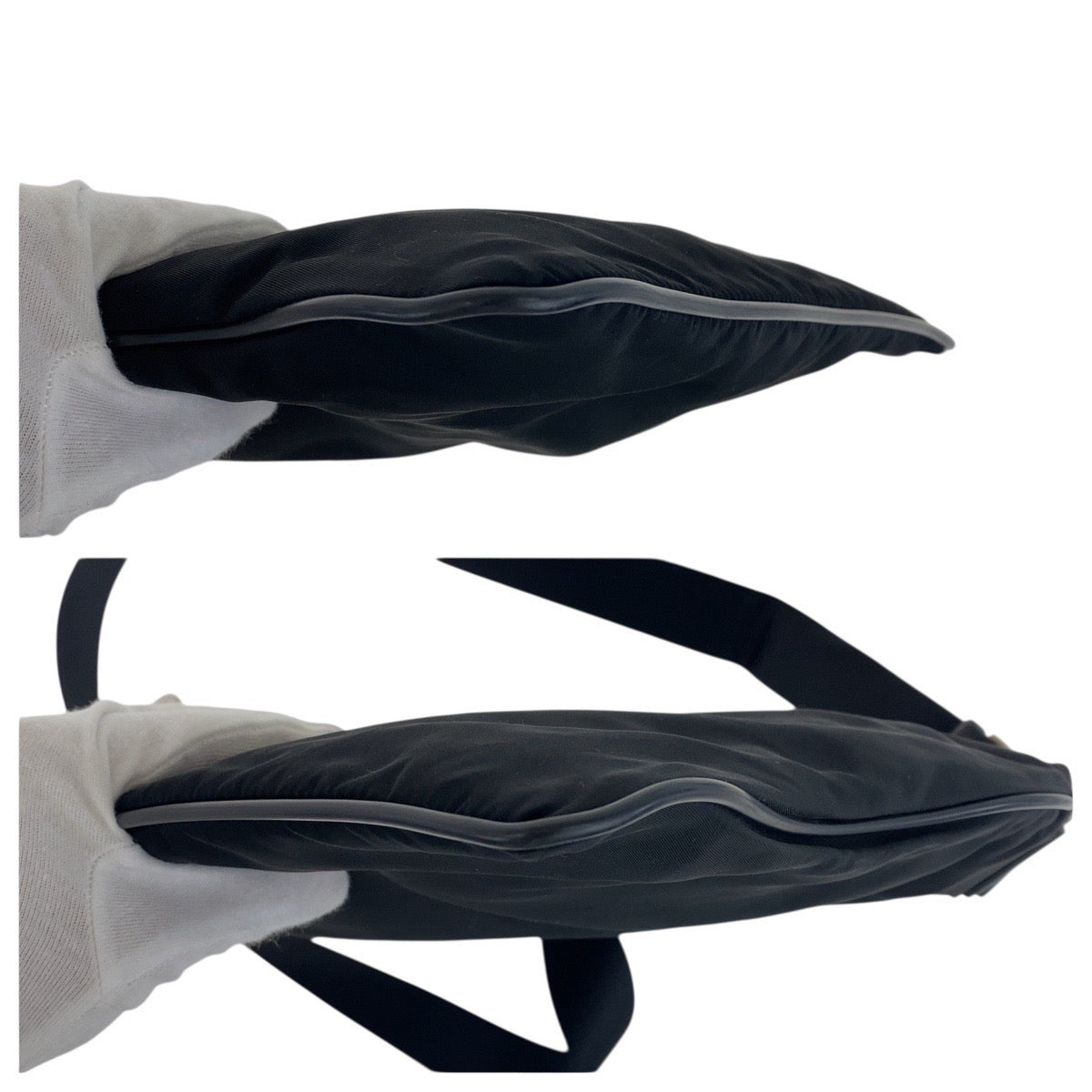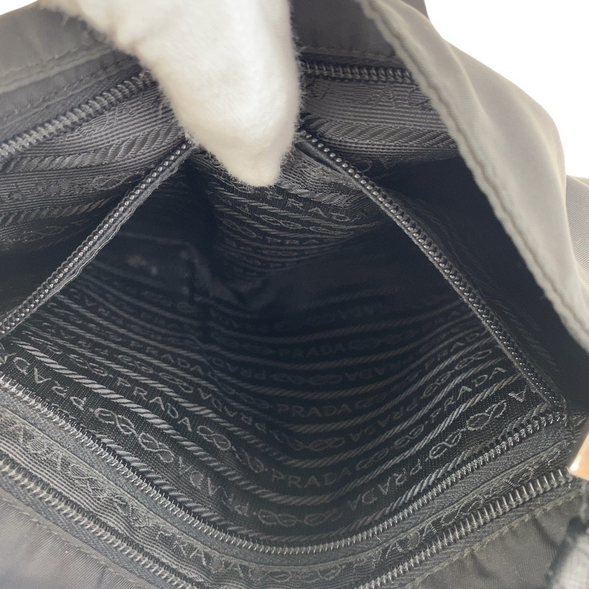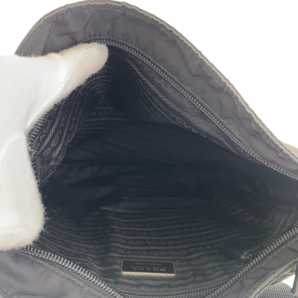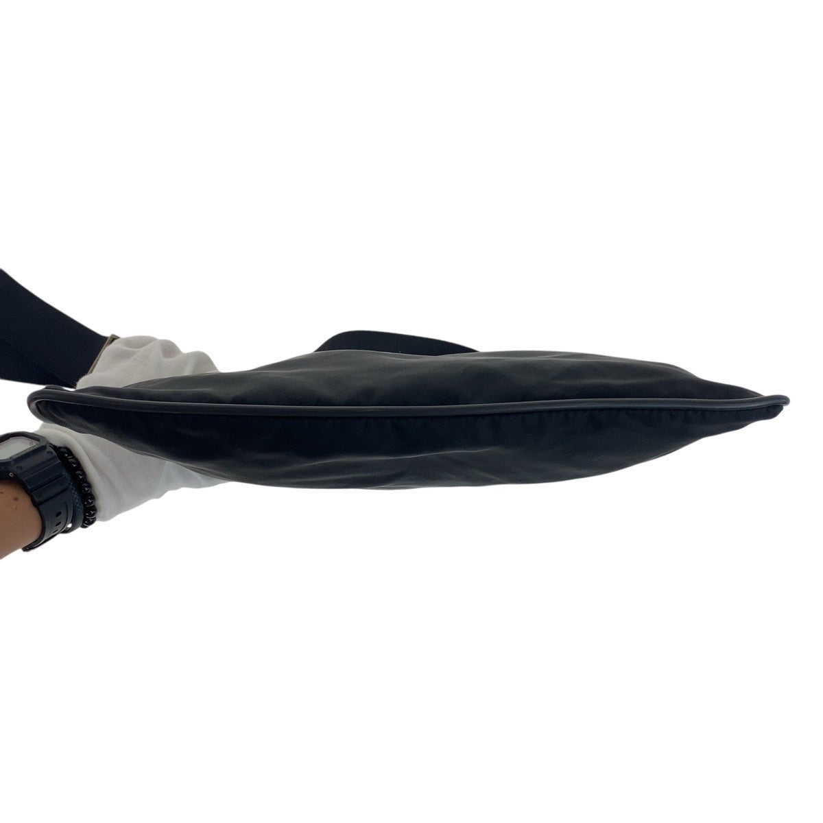 PRADA Shoulder Bag Nylon, Leather Black SilverMetal Shoulder Bag pochette Testo Saffiano Triangle With logo Women Used Authentic
