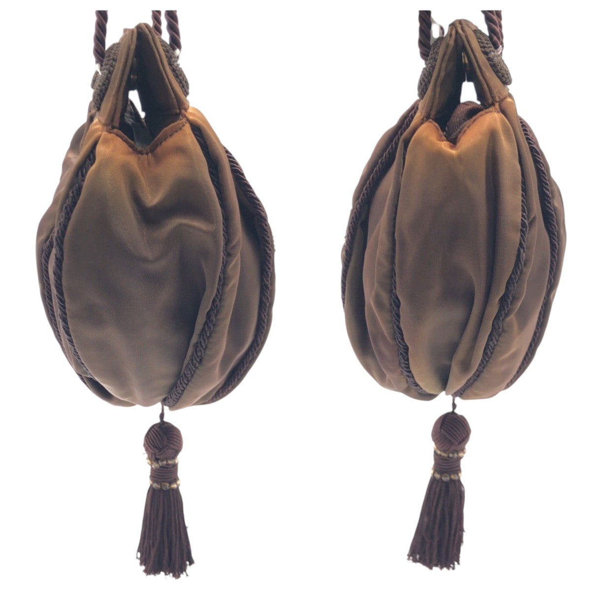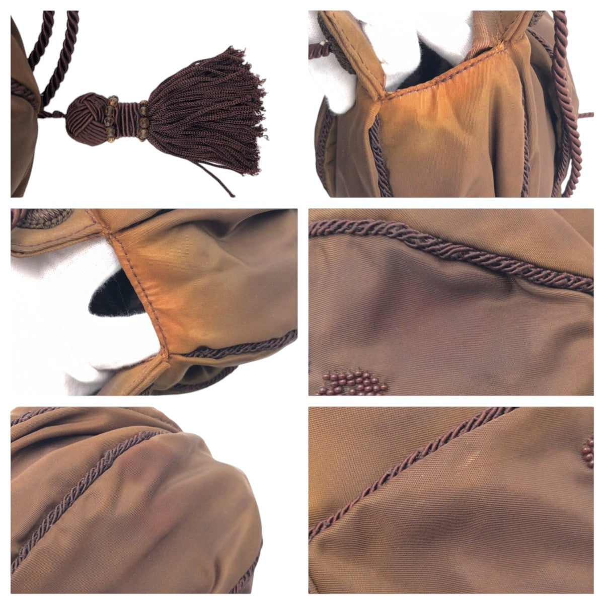 PRADA Shoulder Bag Nylon Brown Beads logo Women Used Authentic