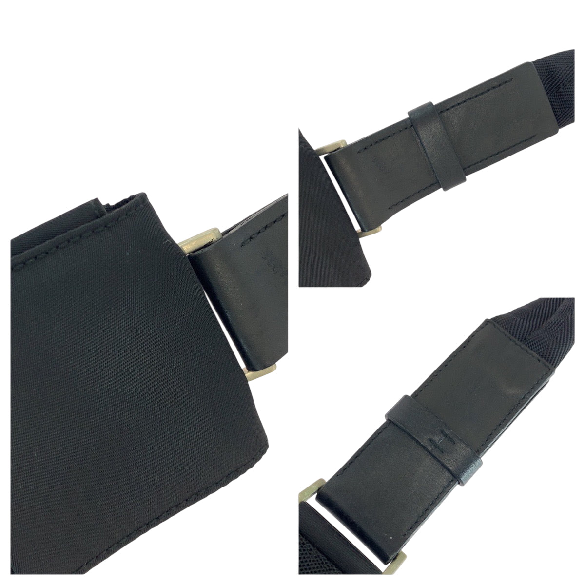 PRADA Shoulder Bag Nylon Brown Black 99AW Tessuto Triangle With logo fur