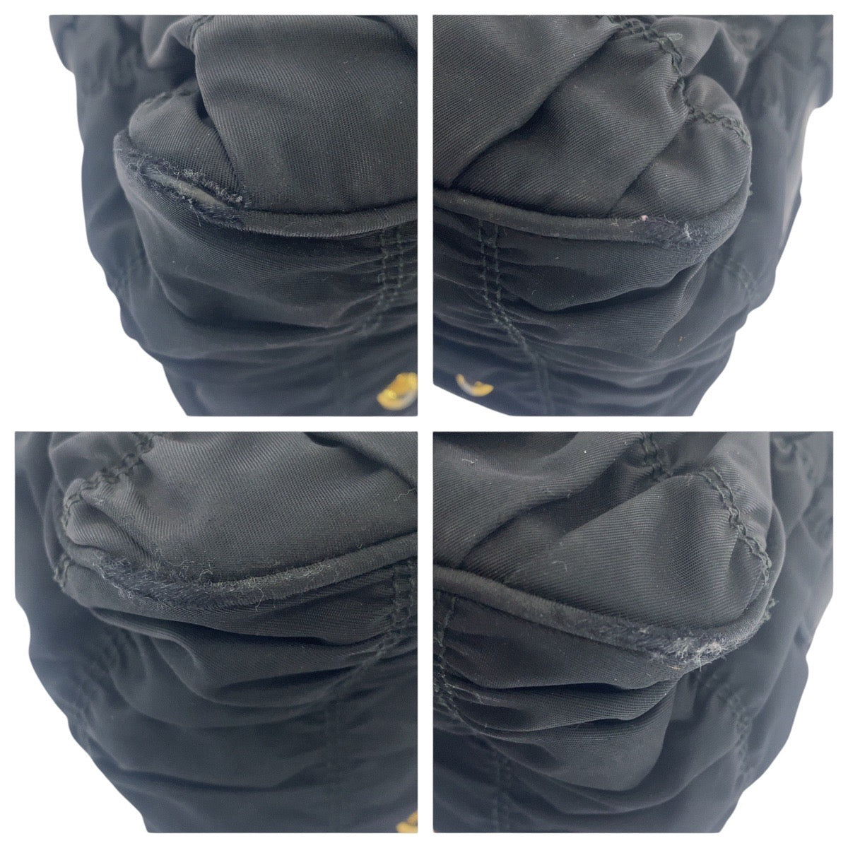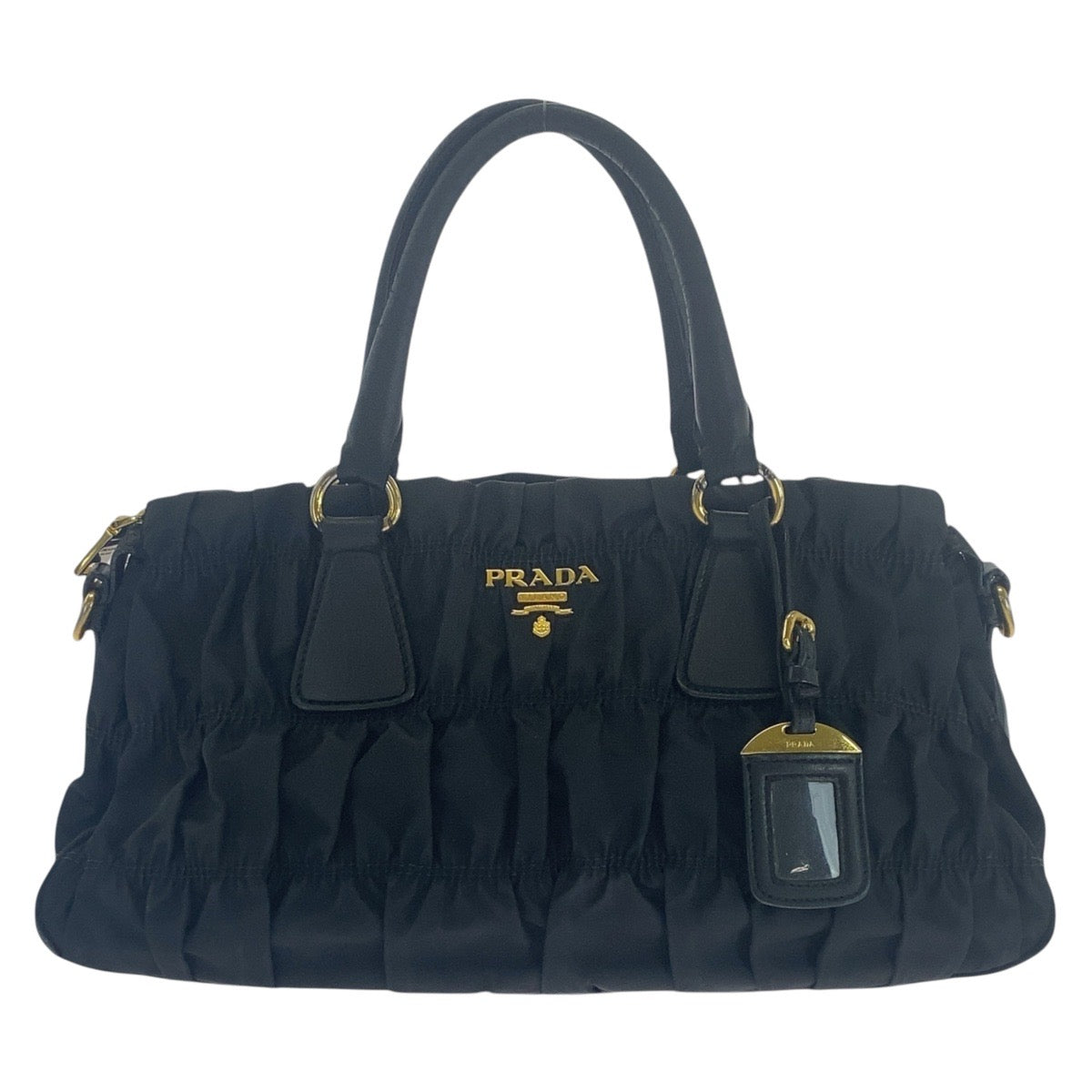 PRADA Shoulder Bag Nylon, Leather Black GoldMetal Shoulder Bag handbag Test Ruched Women Used Authentic