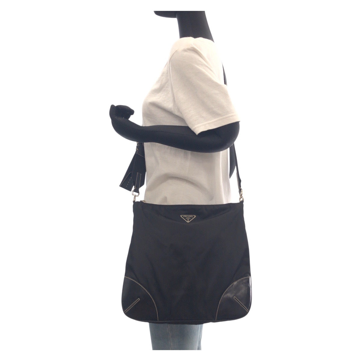 PRADA Shoulder Bag Nylon, Leather Black SilverMetal Shoulder Bag pochette Test Triangle With logo Women(Unisex) Used Authentic