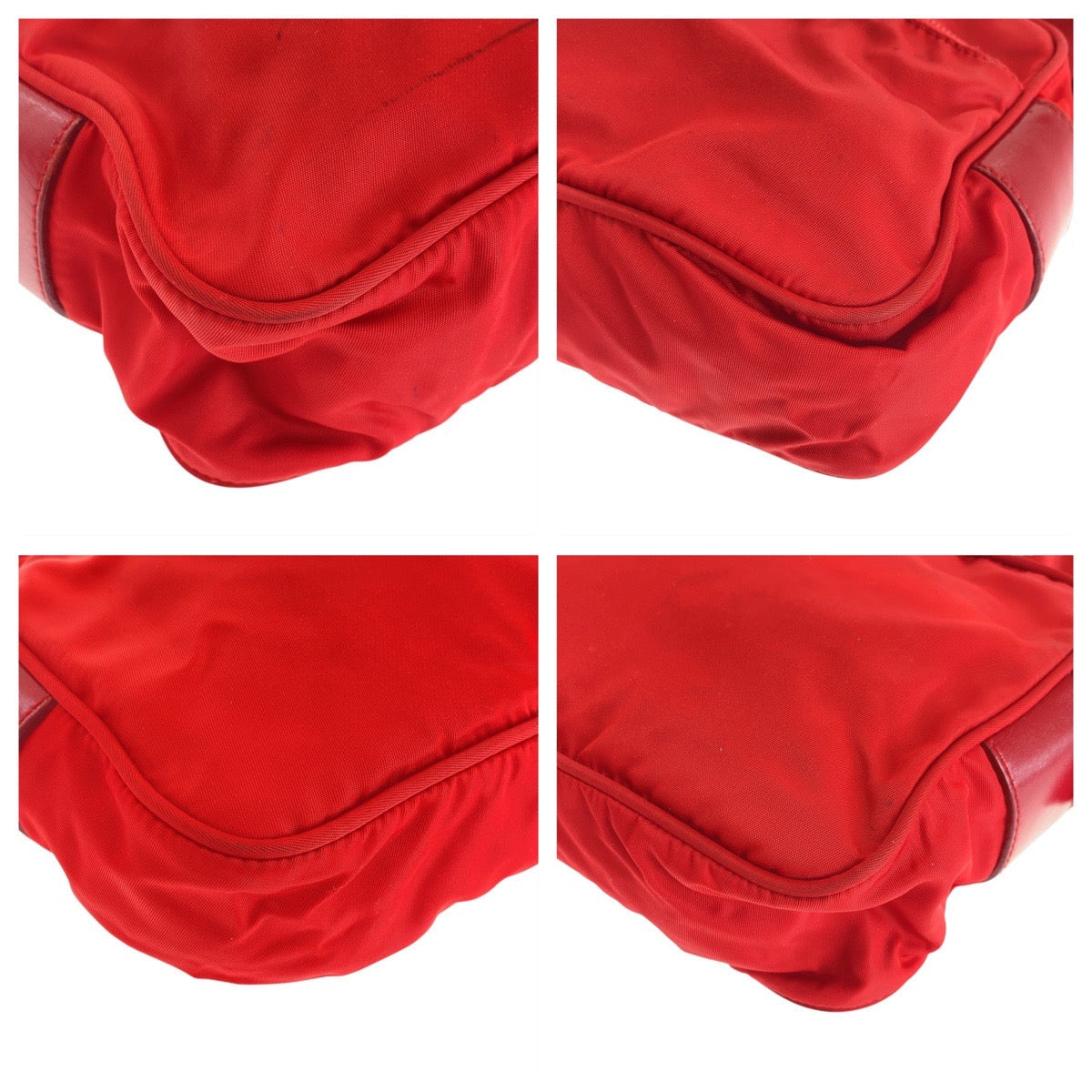 PRADA Shoulder Bag Nylon, Leather Red Shoulder Bag pochette Test Triangle With logo Women Used Authentic