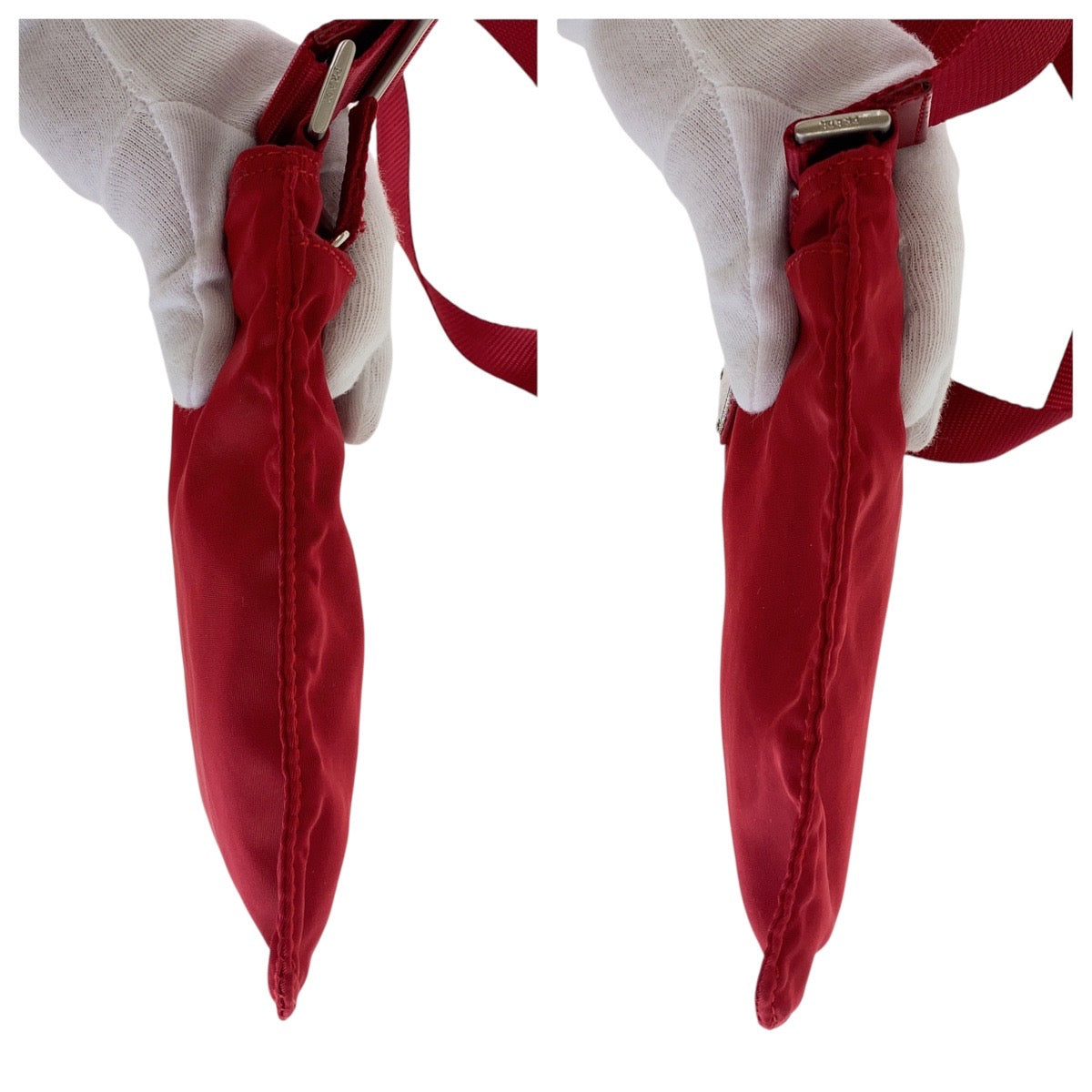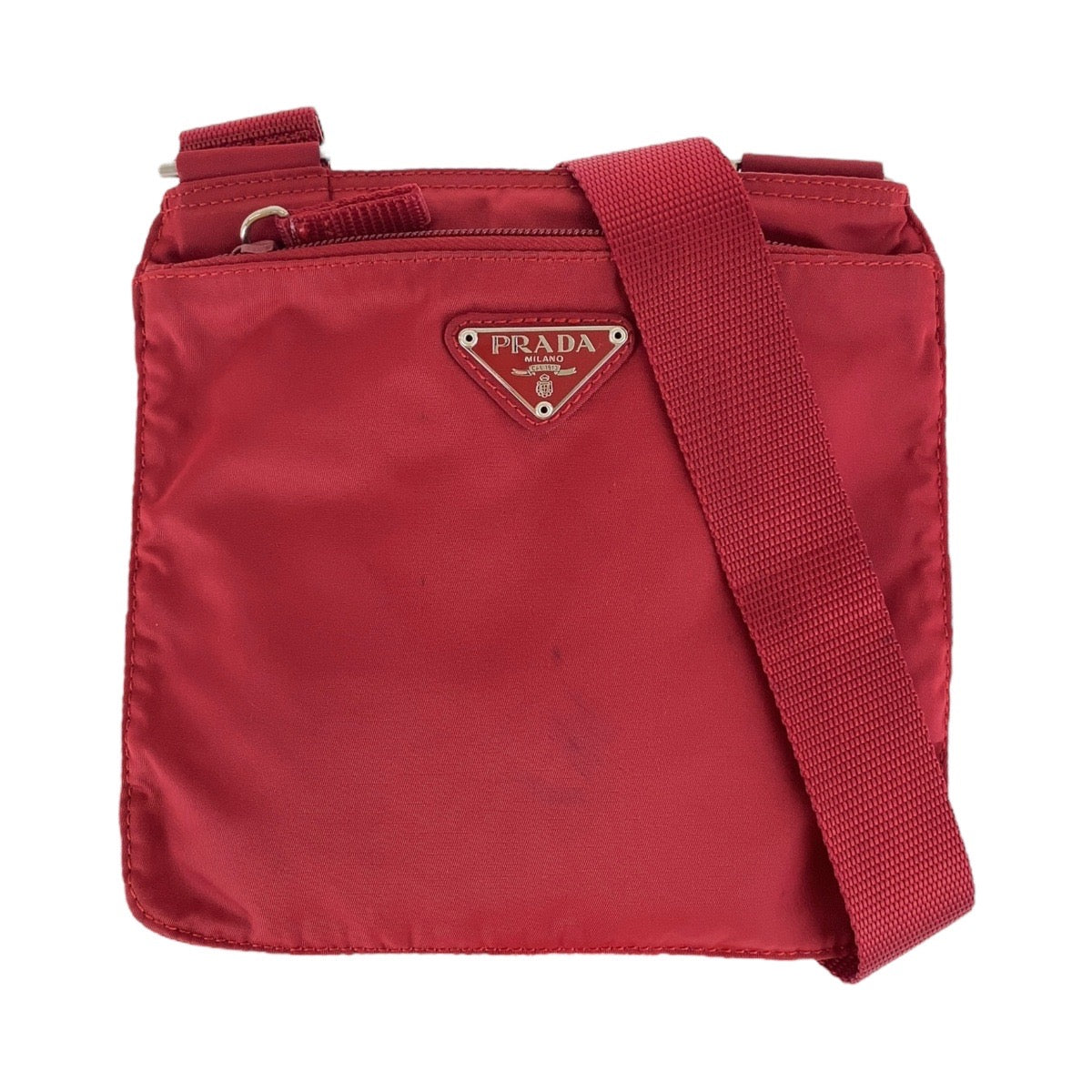 PRADA Shoulder Bag Nylon Red Shoulder Bag pochette Test Triangle With logo Women Used Authentic