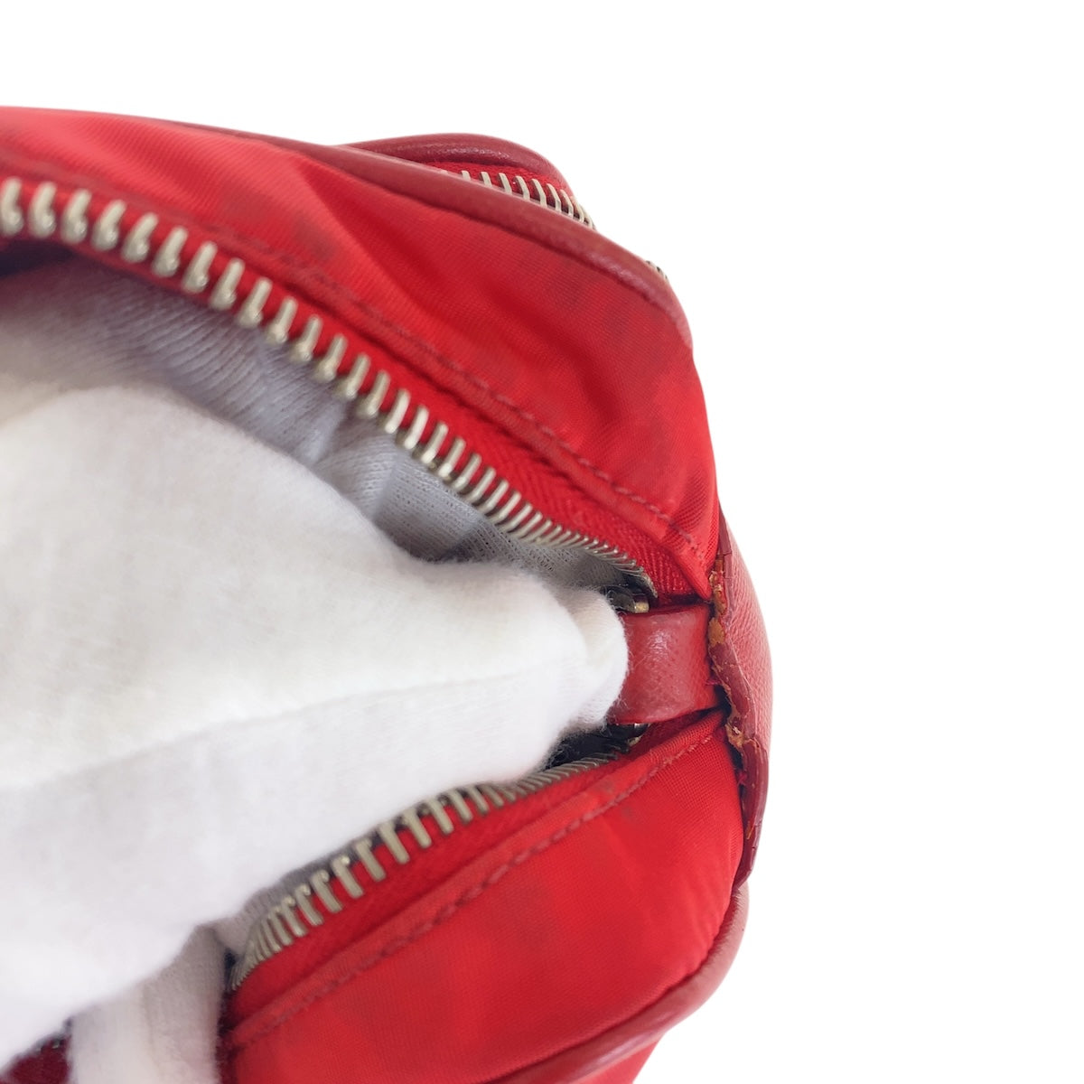 PRADA Shoulder Bag Nylon Red Silver Metal Testo Saffiano Triangle With logo