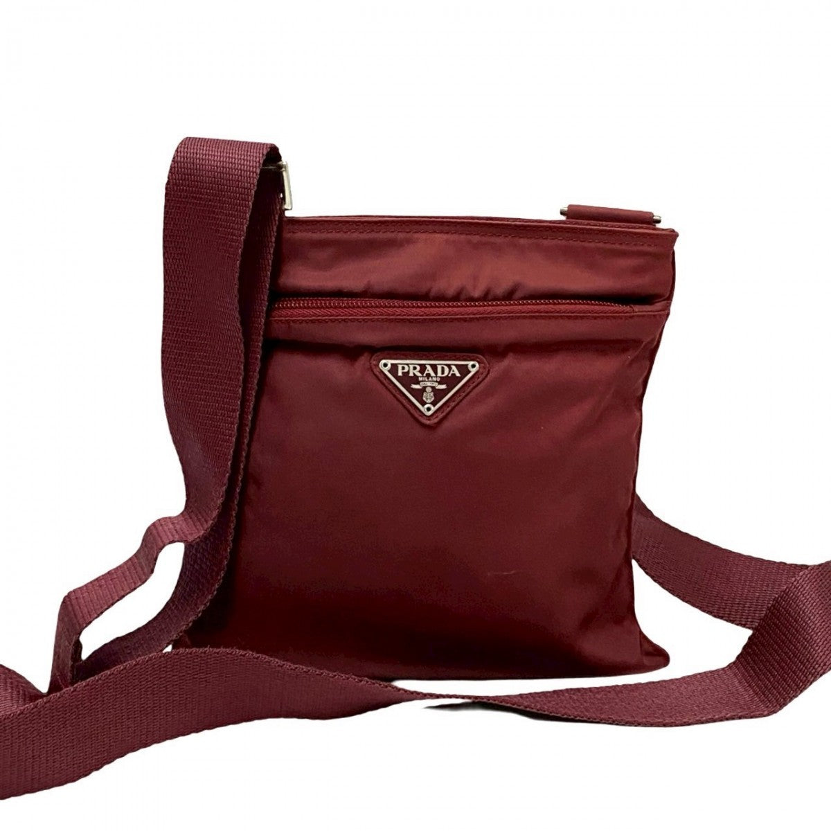 PRADA Shoulder Bag Nylon wine-red Triangle logo Metal Women Used Authentic