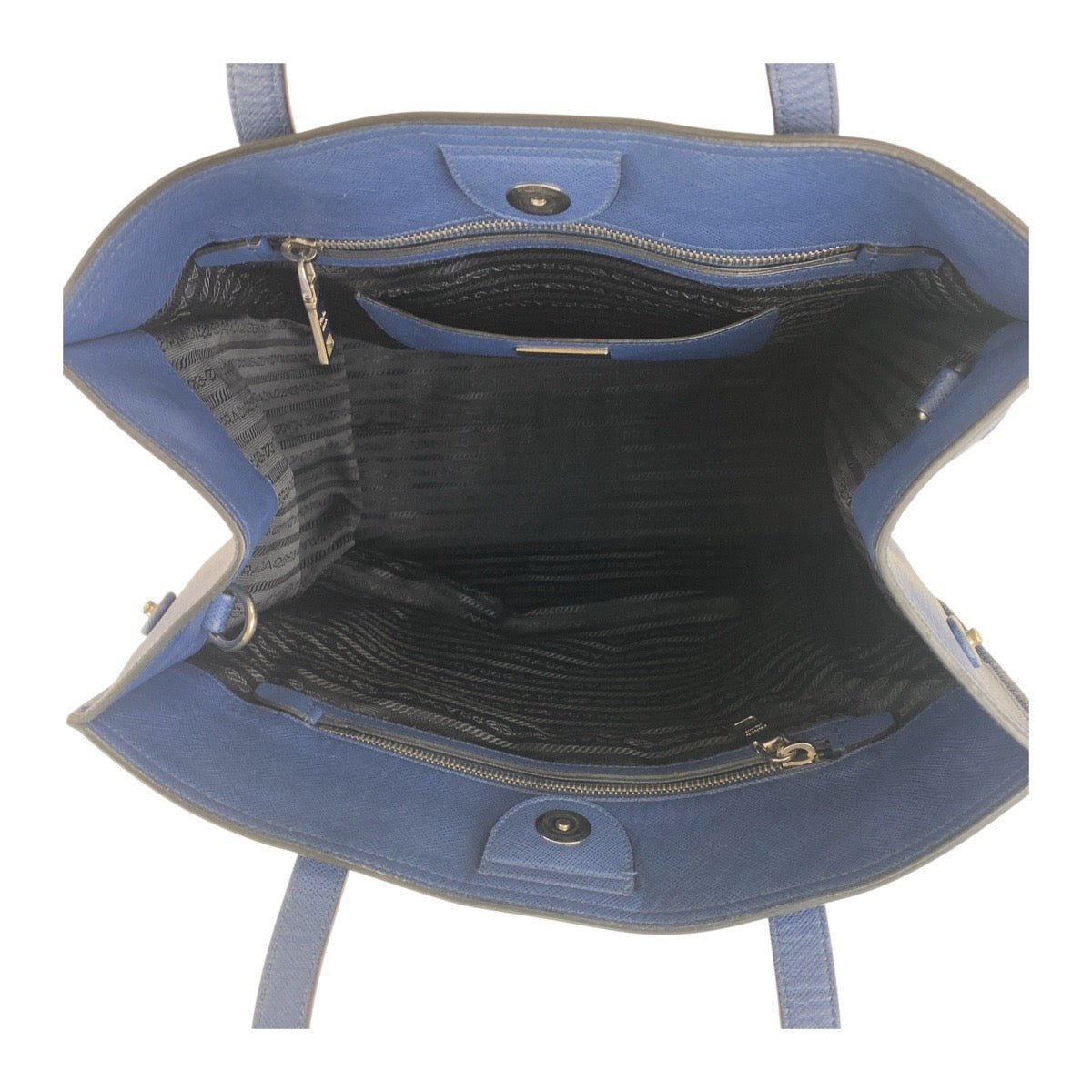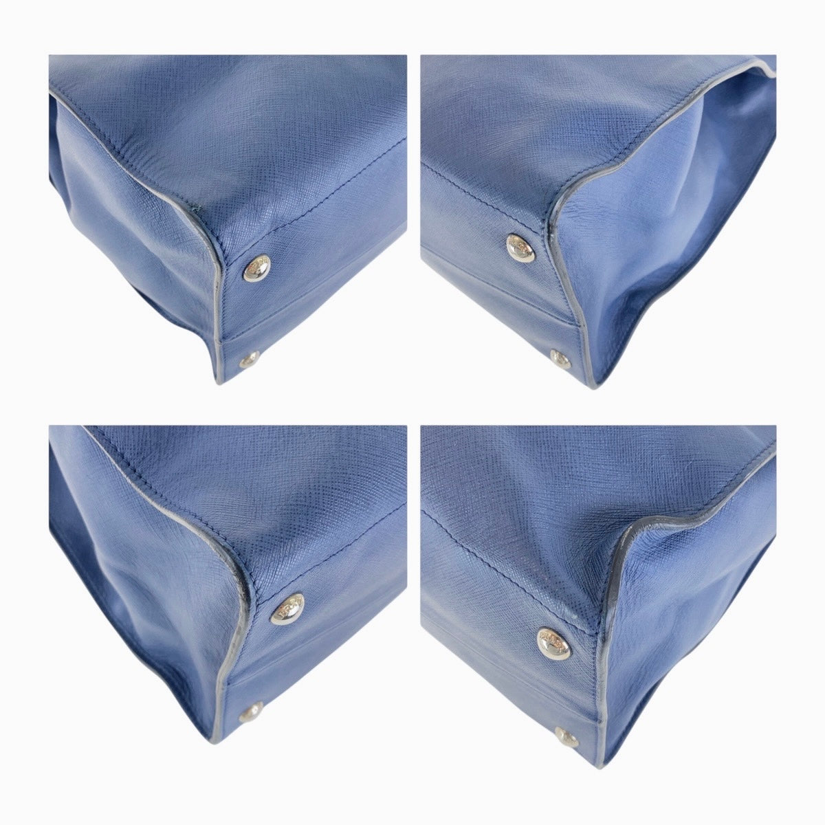 PRADA Tote Bag 227 31/S leather Navy SilverMetal Tote Bag Shoulder Bag Unisex Safiano Triangle With logo Women Used Authentic