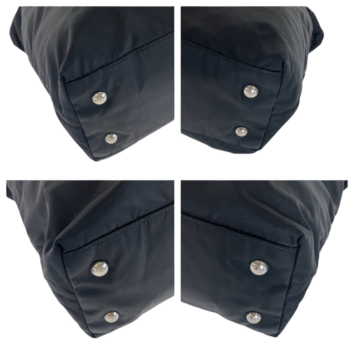 PRADA Tote Bag BN1105 Nylon Black SilverMetal Tote Bag Shoulder Bag 2way Test Logo embossed Women Used Authentic