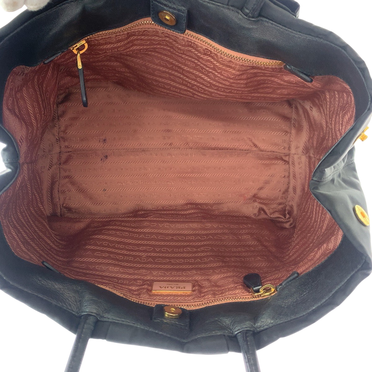 PRADA Tote Bag BN1601 Nylon Black GoldMetal Tote Bag handbag Test logo ribbon Women Used Authentic