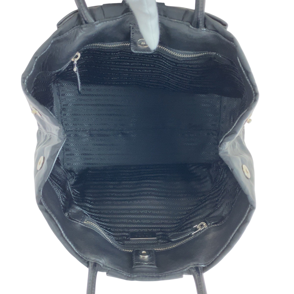 PRADA Tote Bag BN1601 Nylon Black SilverMetal Tote Bag handbag Test Ribbon TriangleWith logo Women Used Authentic