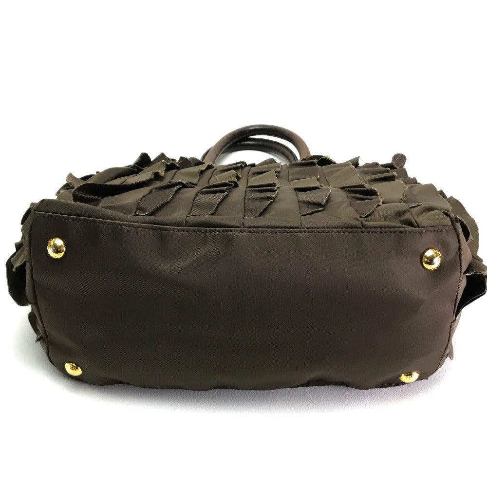 PRADA Tote Bag BN1728 Nylon canvas, leather Brown Frill Women Used Authentic