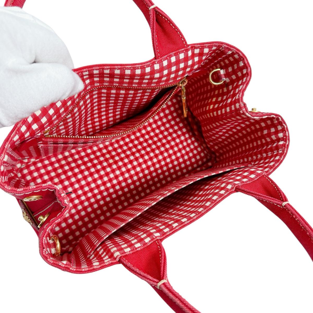 PRADA Tote Bag BN2439 canvas Red 2way mini Canapa Women Used Authentic