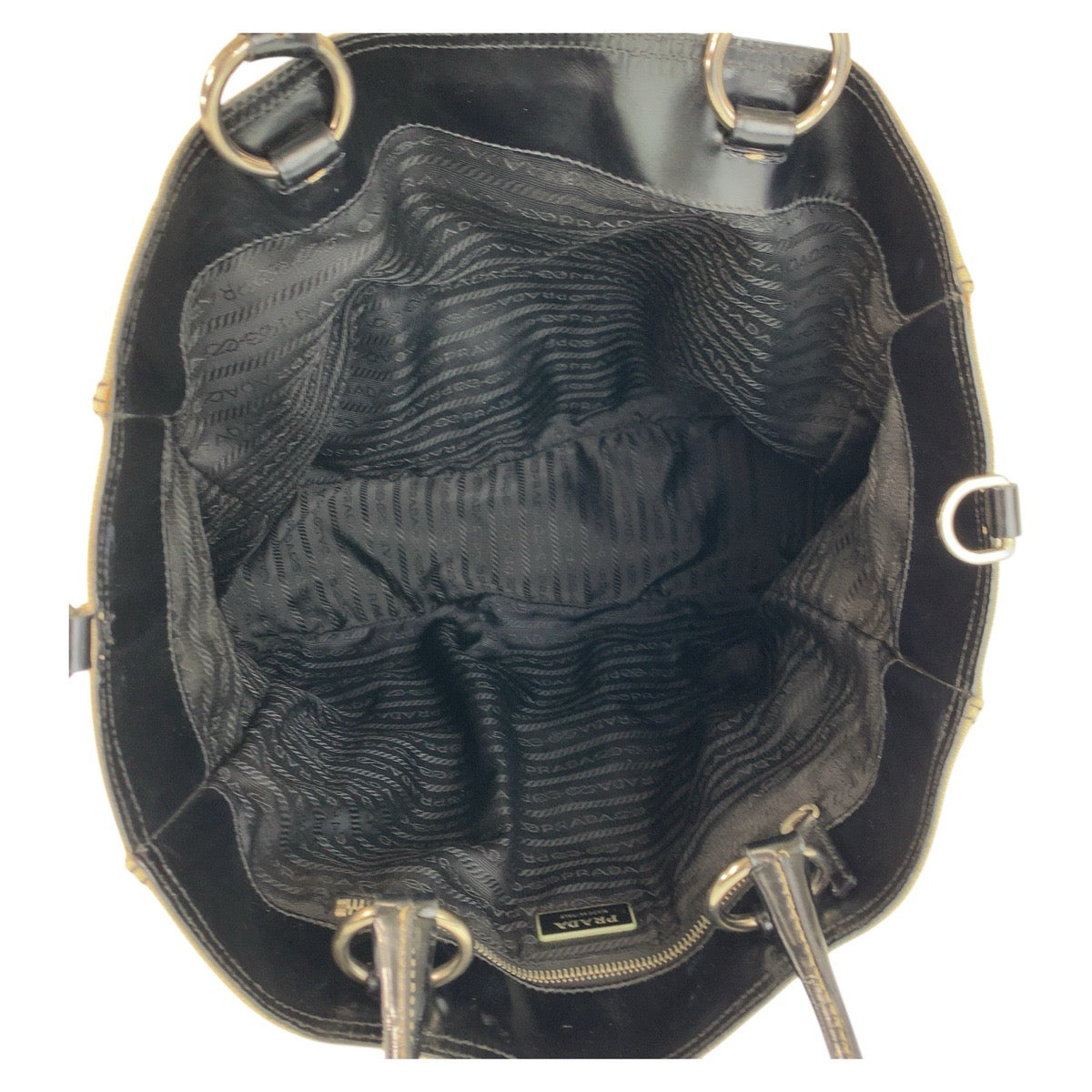PRADA Tote Bag canvas Beige Black SilverMetal Triangle With logo