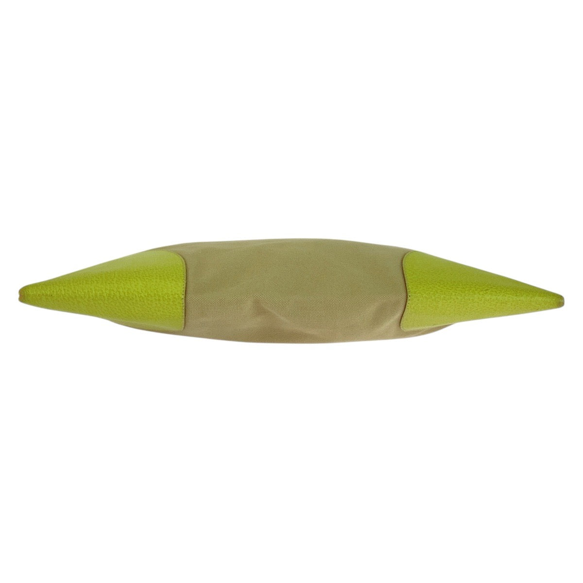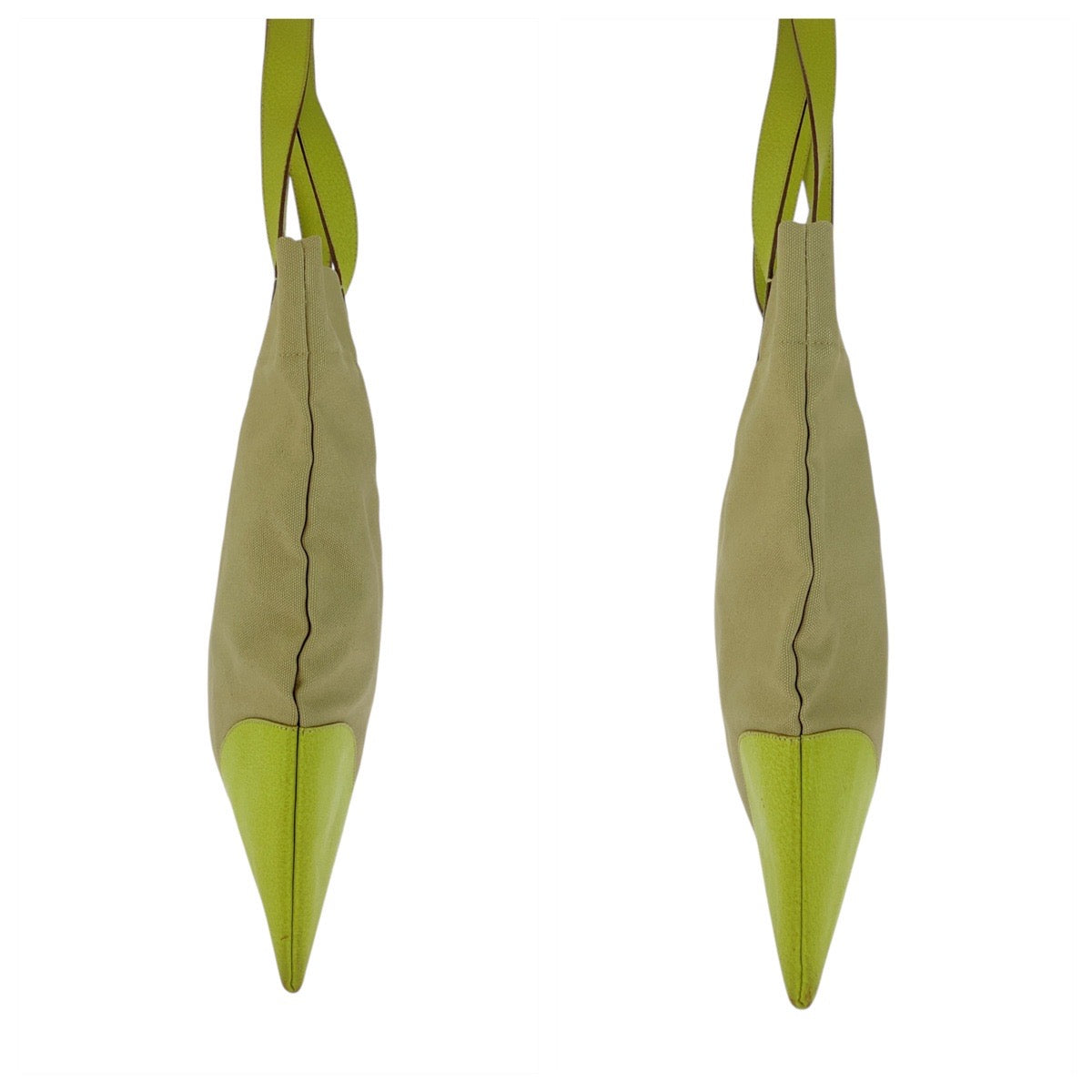 PRADA Tote Bag canvas Beige Green SilverMetal Triangle With logo