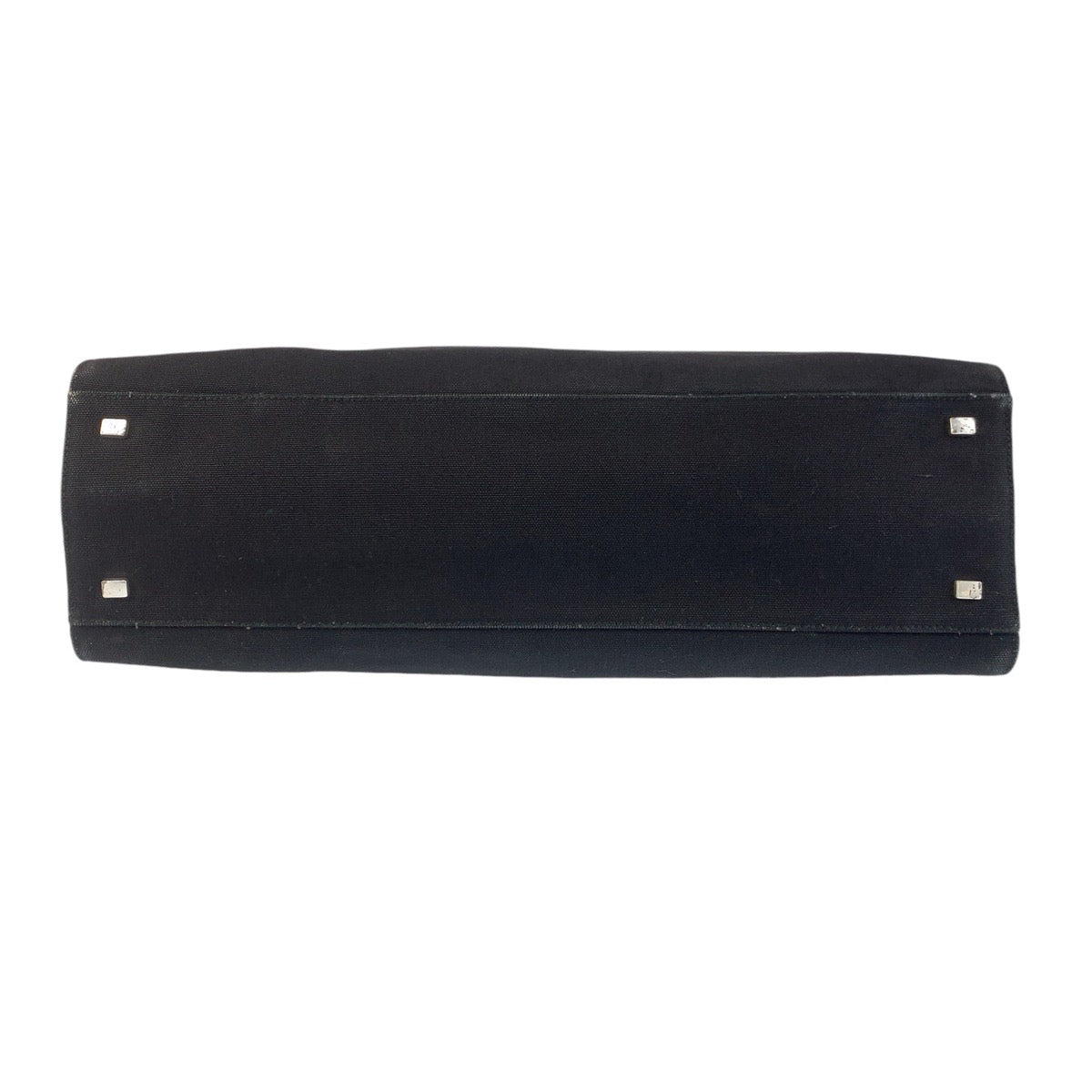 PRADA Tote Bag canvas BlackSilverMetal Tote Bag Shoulder Bag Triangle With logo Women Used Authentic