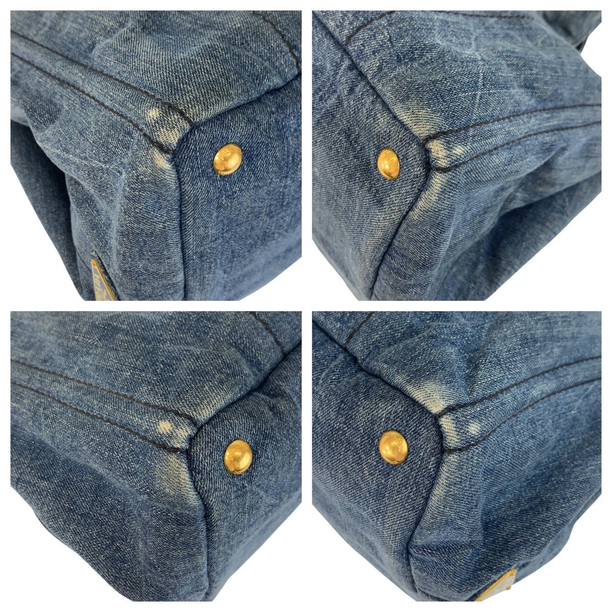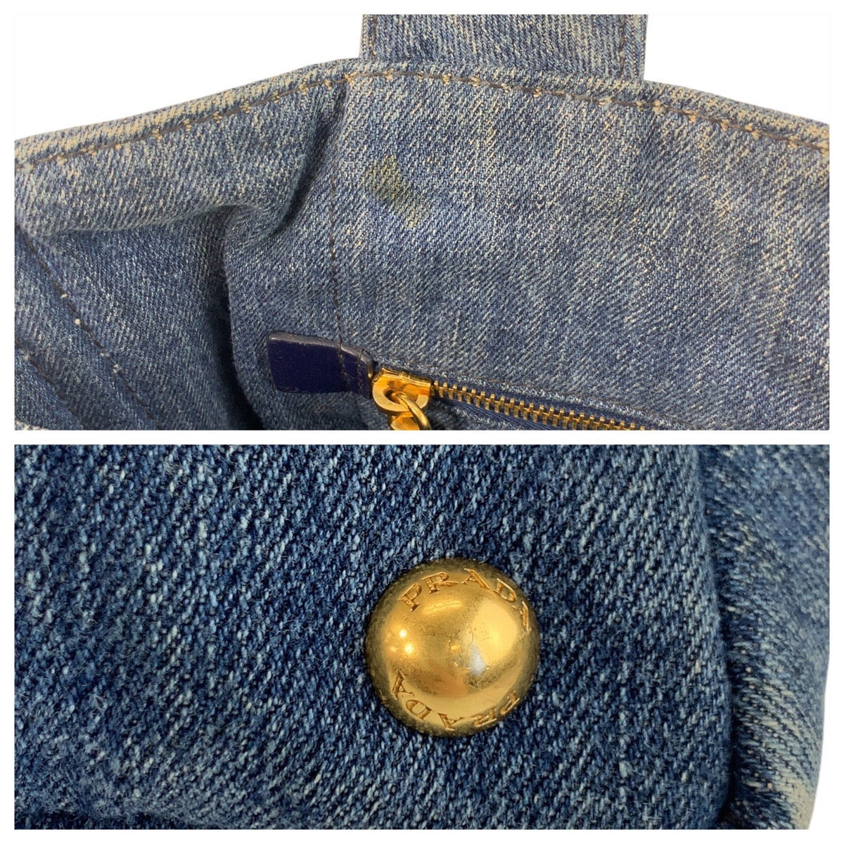 PRADA Tote Bag canvas Blue GoldMetal Canapa