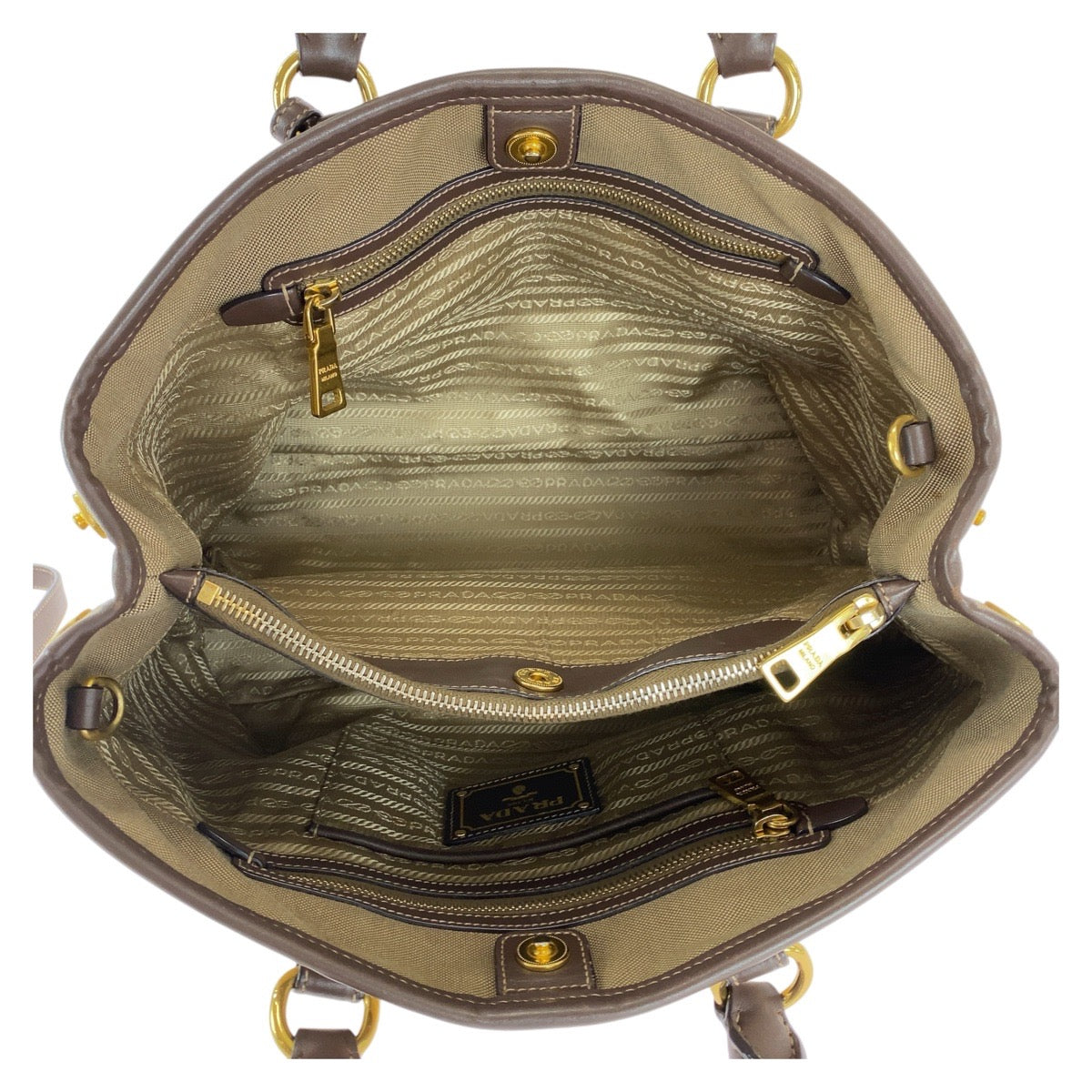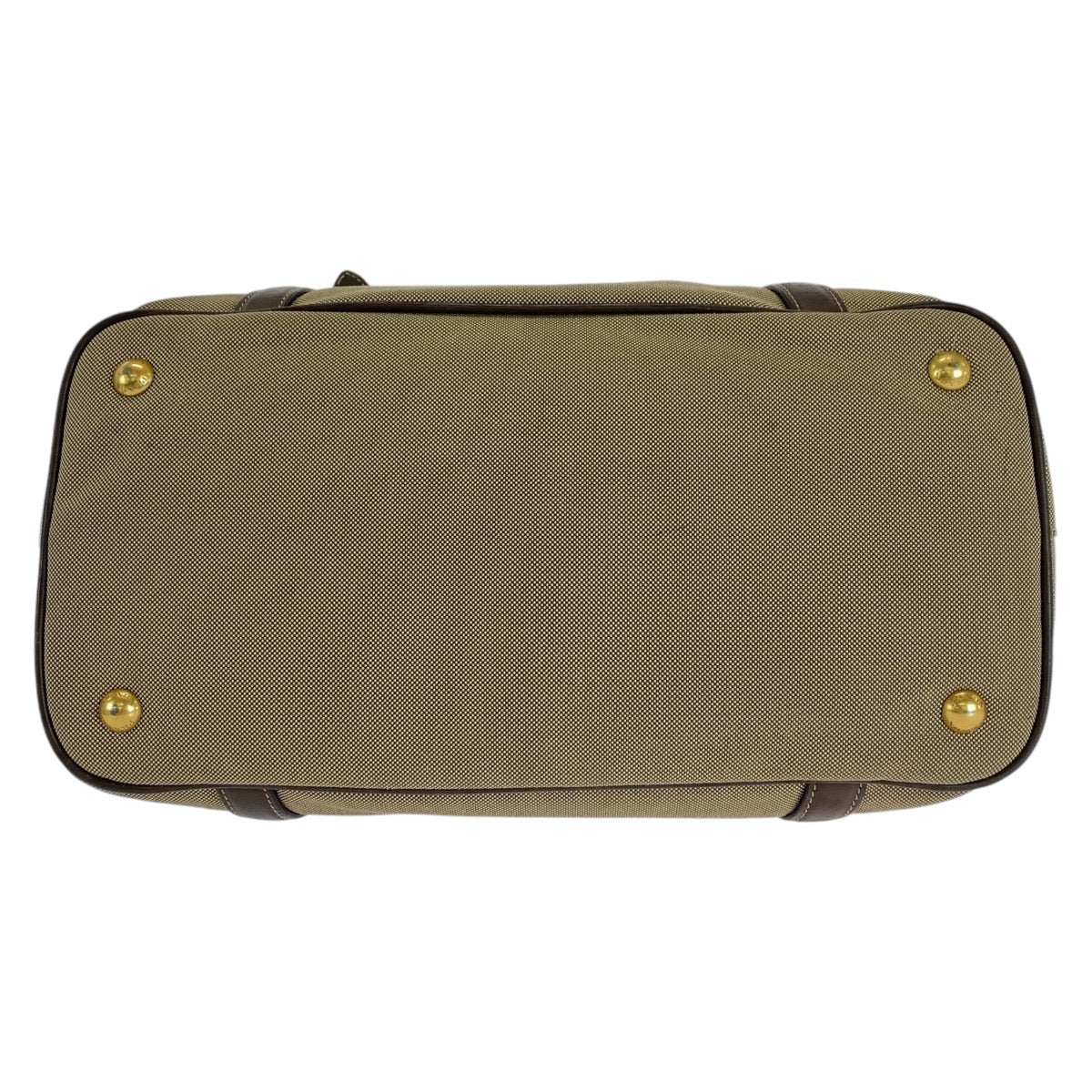 PRADA Tote Bag Canvas, Leather Khaki Brown Gold Metal Tote Bag Shoulder Bag Logo jacquard Triangle With logo Women Used Authentic