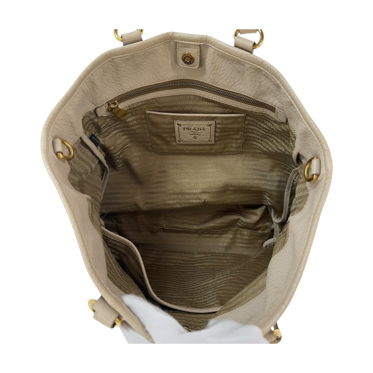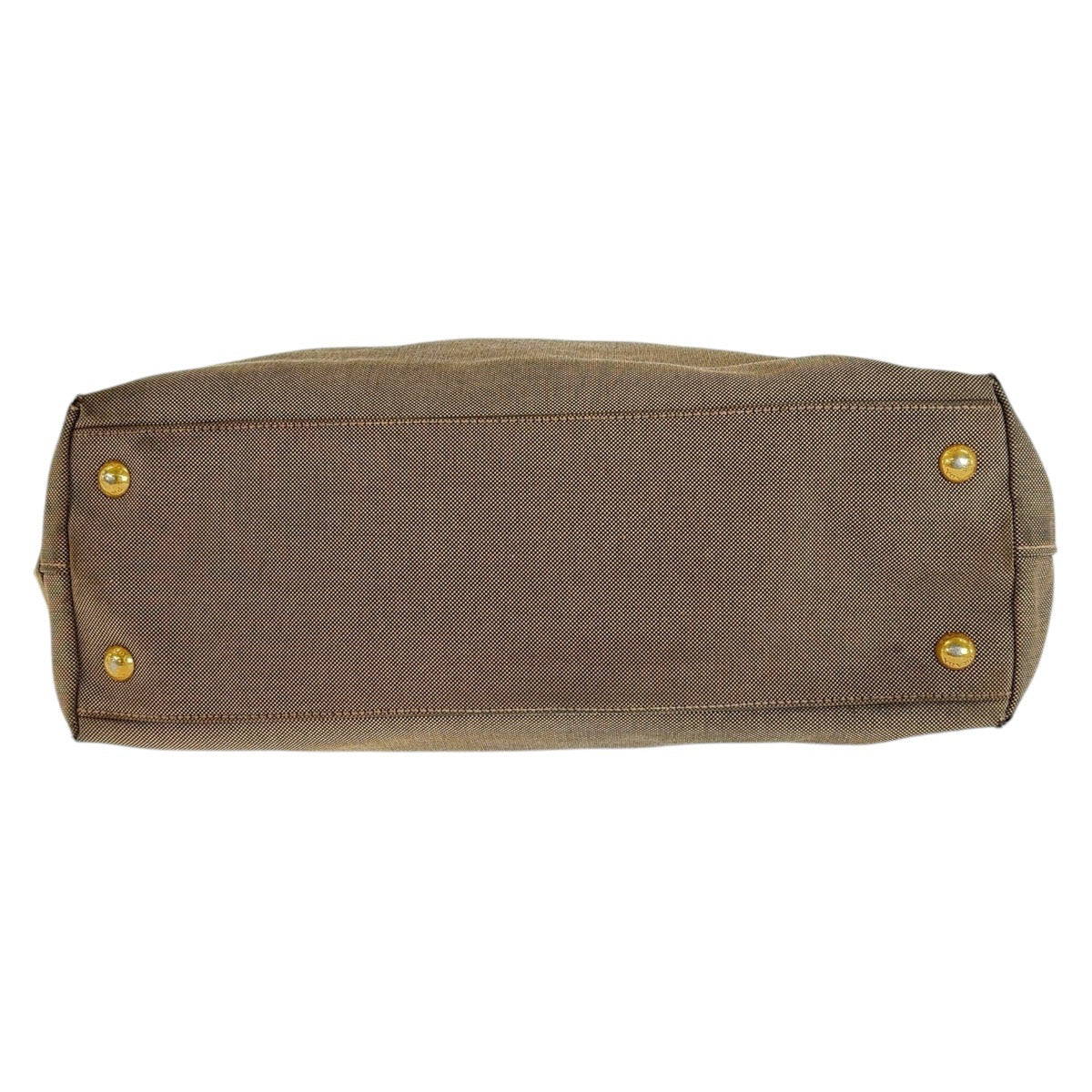 PRADA Tote Bag Canvas, Leather Beige Gold Metal Tote Bag Shoulder Bag 2way Logo jacquard Women Used Authentic