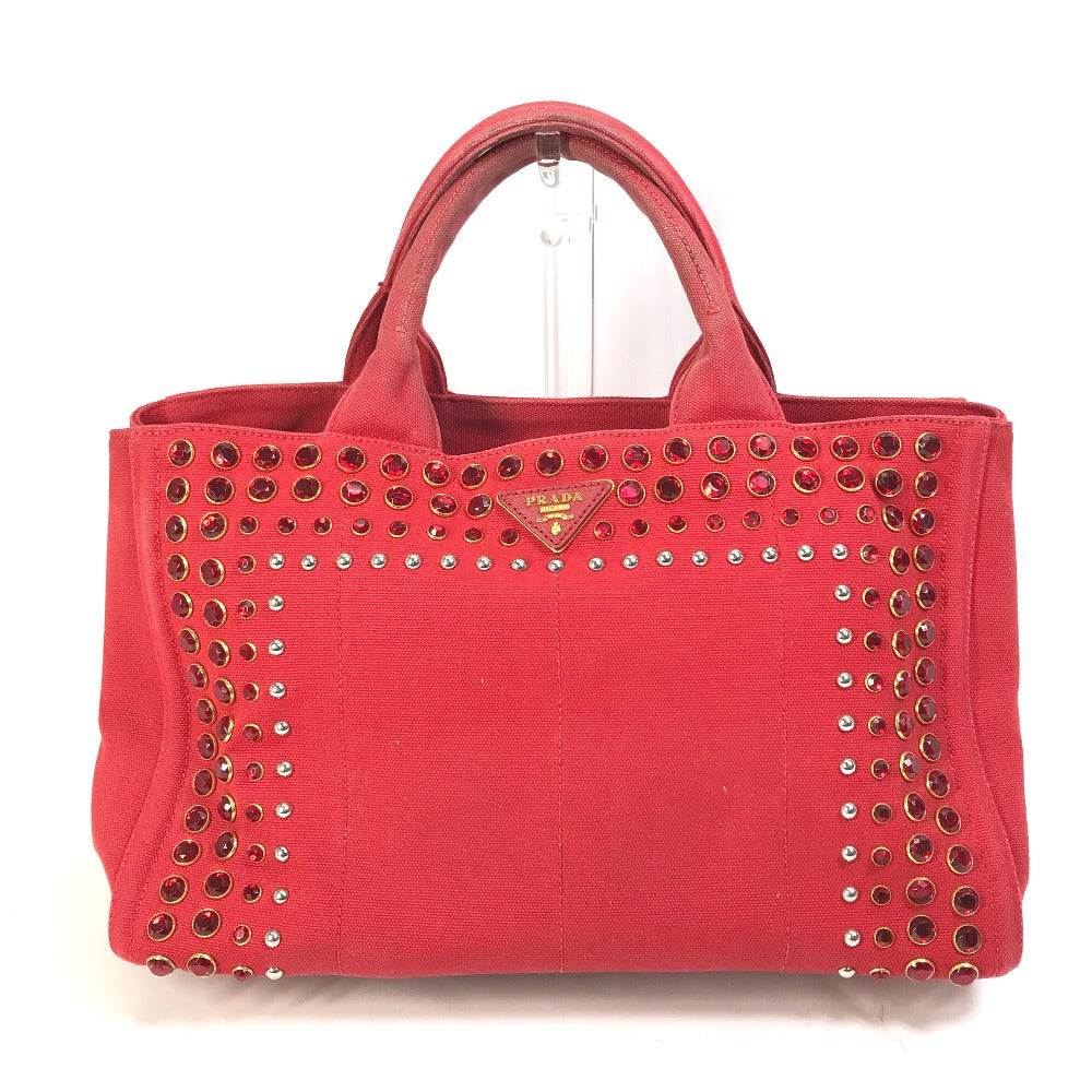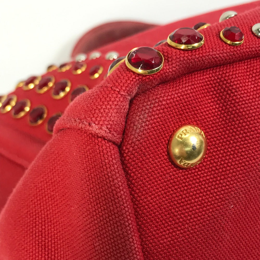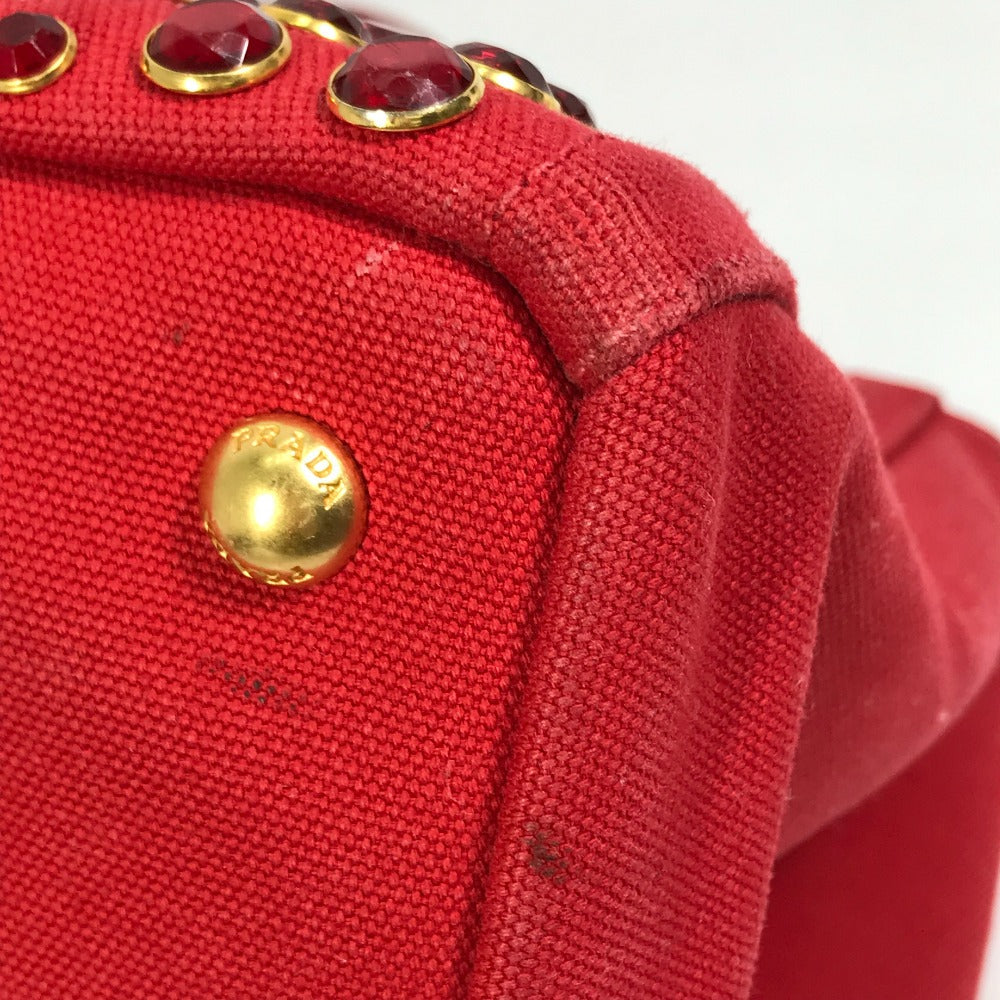 PRADA Tote Bag canvas Red Triangle logo plate Canapa GM Bijou