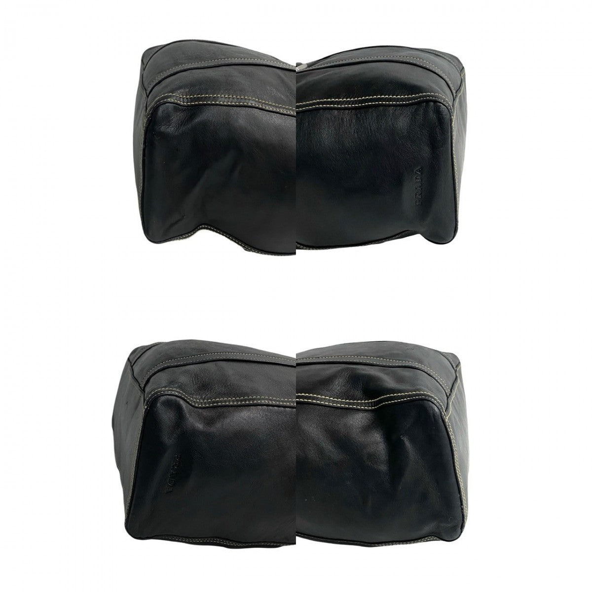 PRADA Tote Bag leather black logo turn lock Metal Women Used Authentic