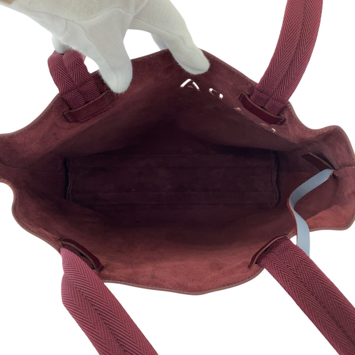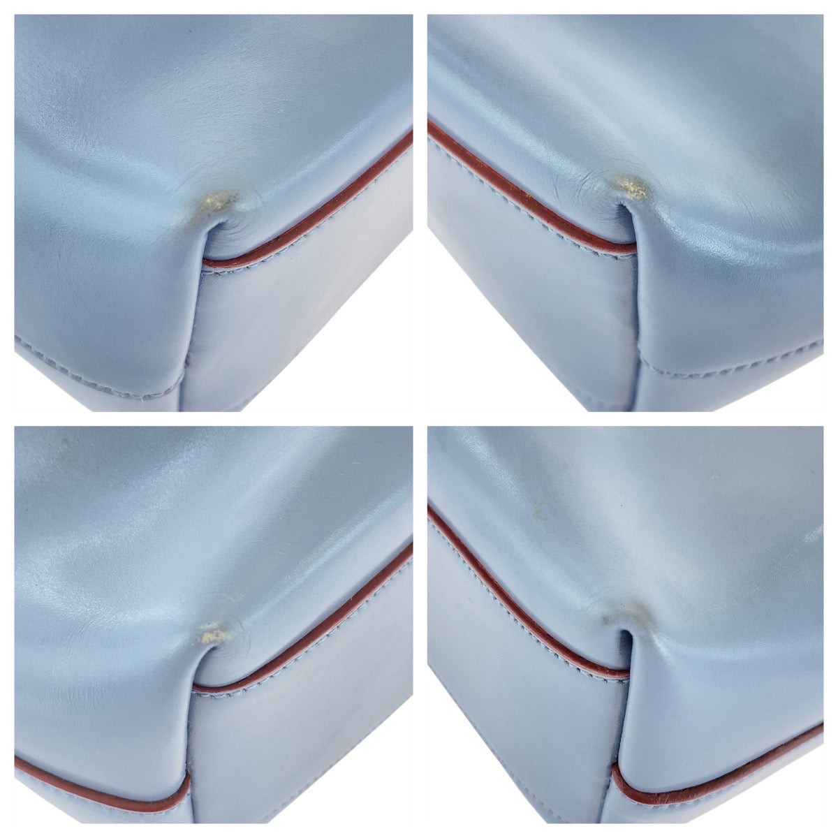PRADA Tote Bag leather Blue Wine Red Tote Bag Shoulder Bag Cut-off logo Women Used Authentic