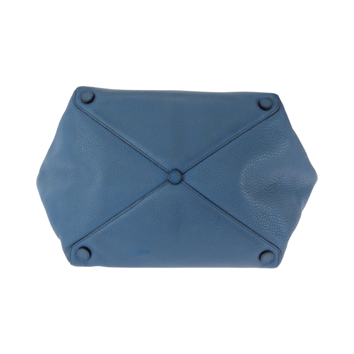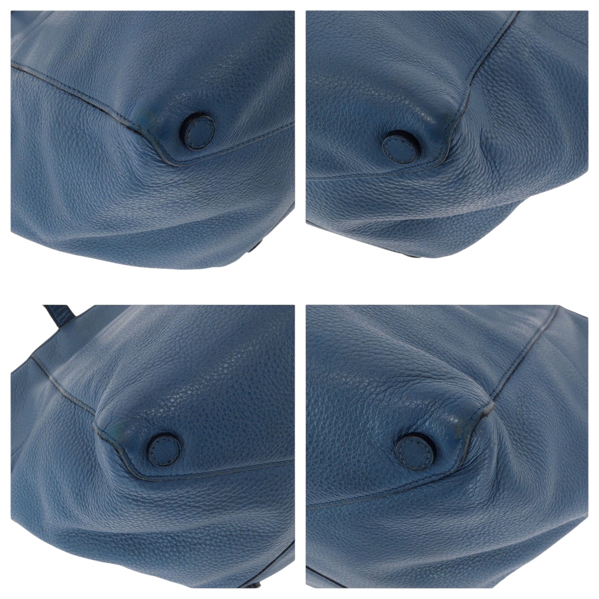 PRADA Tote Bag leather Blue GoldMetal Tote Bag handbag Vitterodino Triangle With logo Women Used Authentic