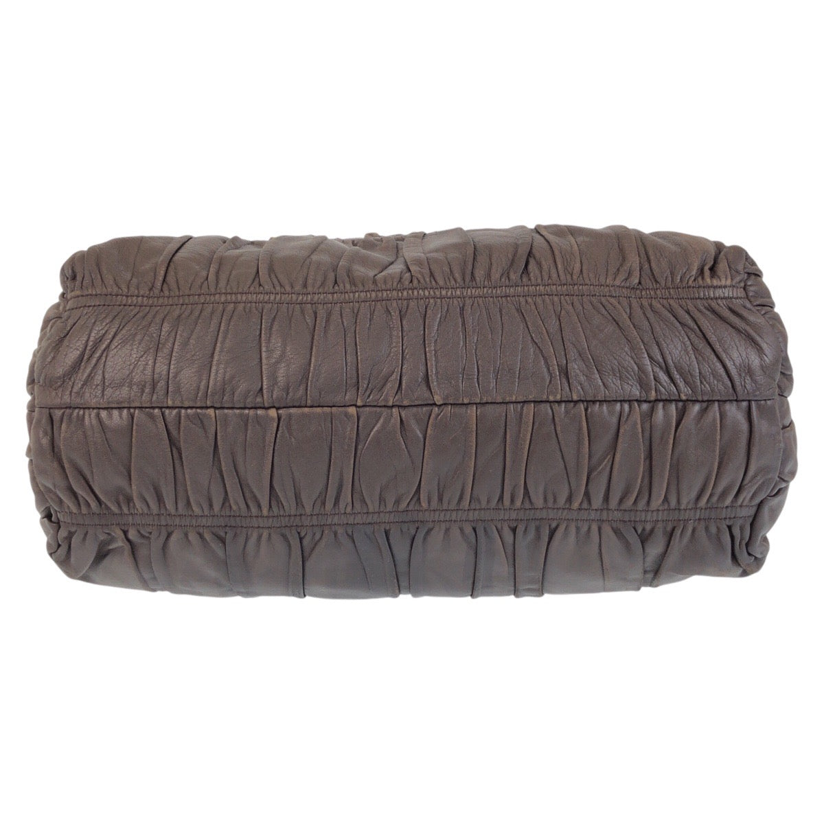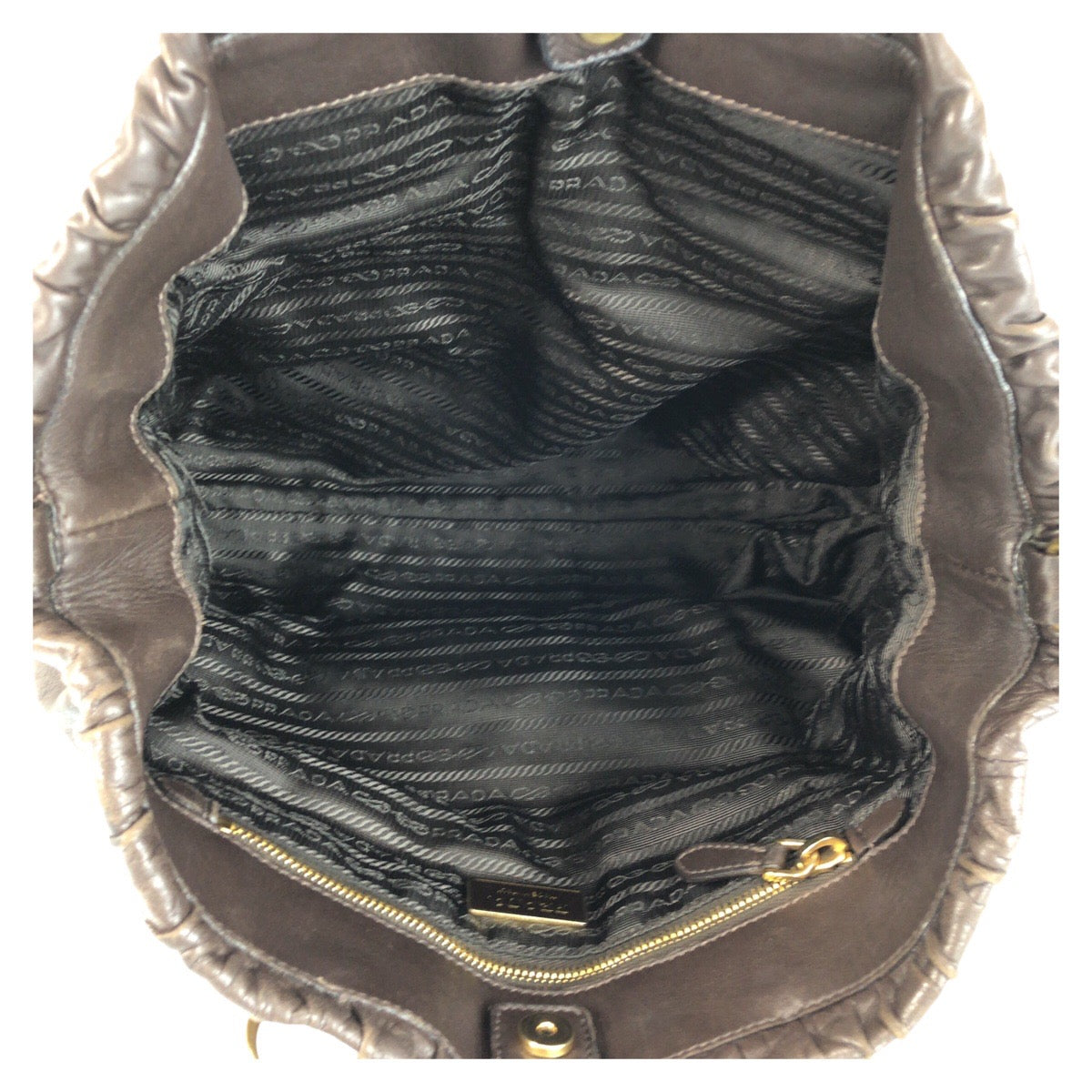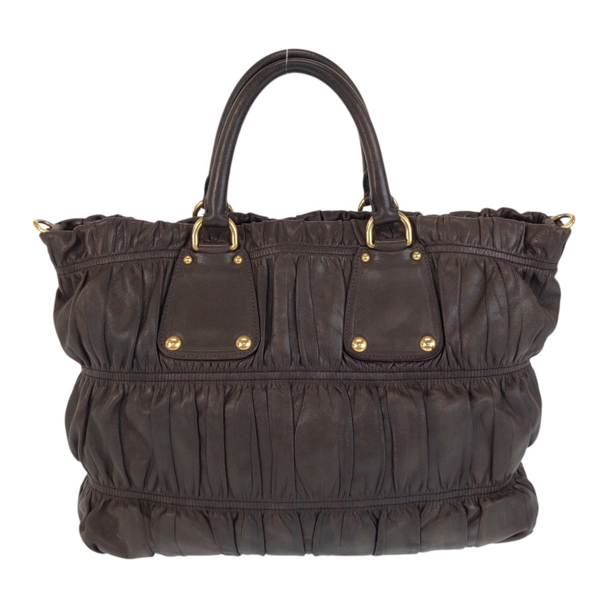 PRADA Tote Bag leather Brown Gold Metal Tote Bag Shoulder Bag 2way Women Used Authentic