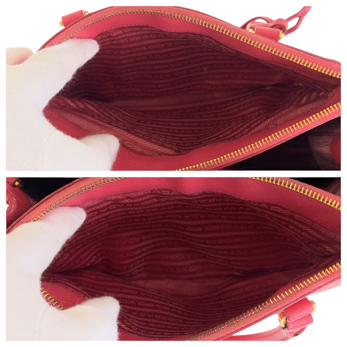 PRADA Tote Bag leather Pink Gold Metal Tote Bag Shoulder Bag 2way Safiano Galleria TriangleWith logo Women Used Authentic