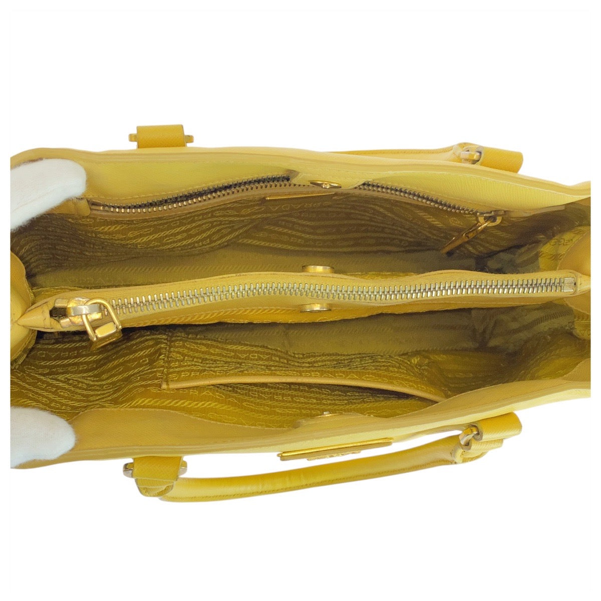PRADA Tote Bag leather yellow Tote Bag Shoulder Bag Safiano Galleria TriangleWith logo Women Used Authentic