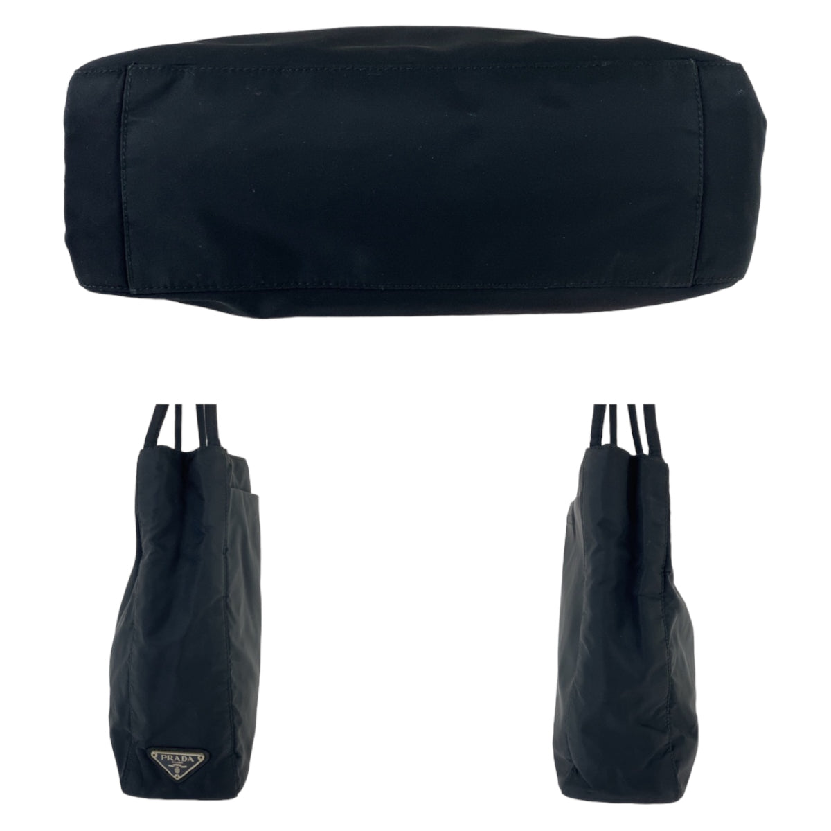 PRADA Tote Bag Nylon Black Silver Metal Tote Bag Shoulder Bag Test Triangle With logo Women Used Authentic
