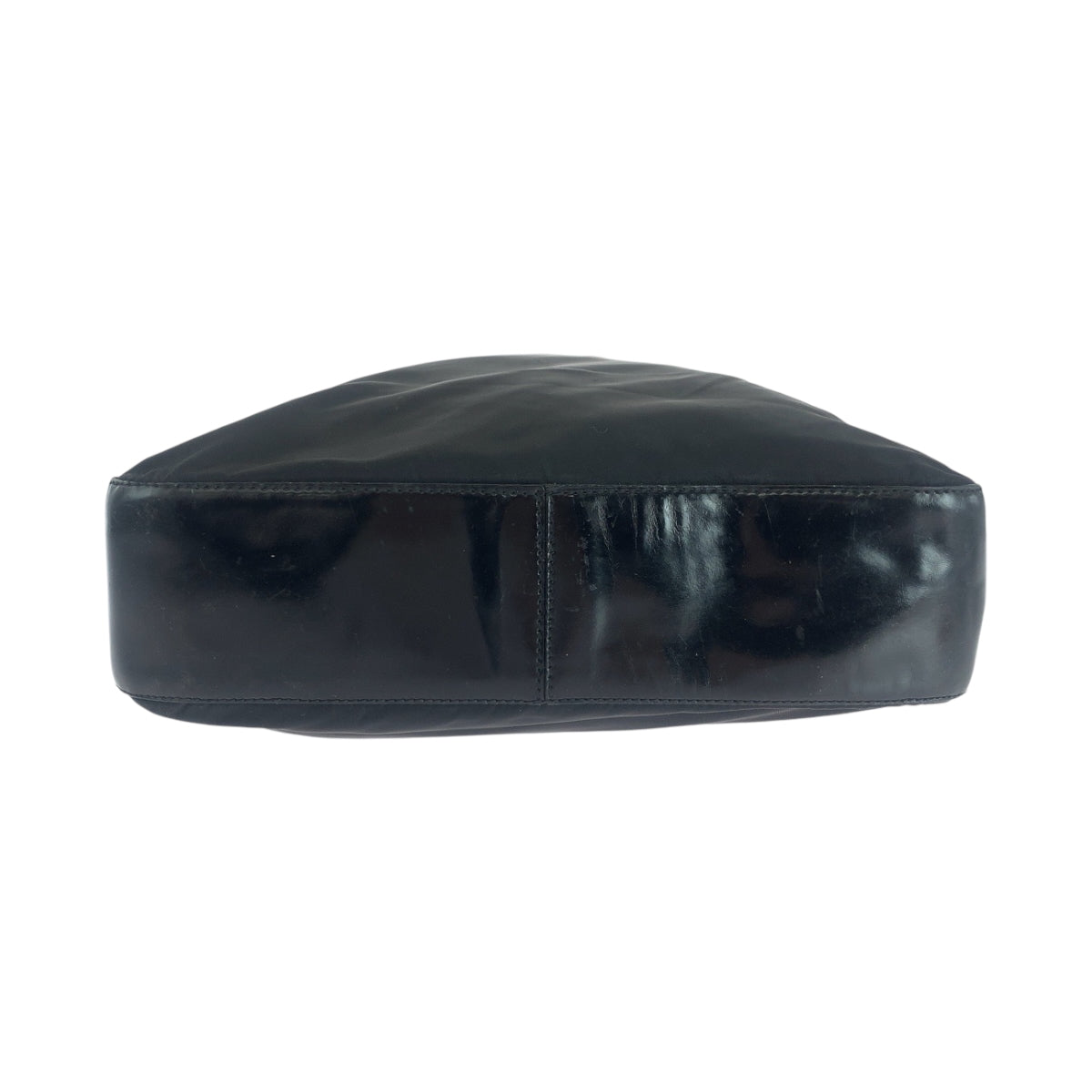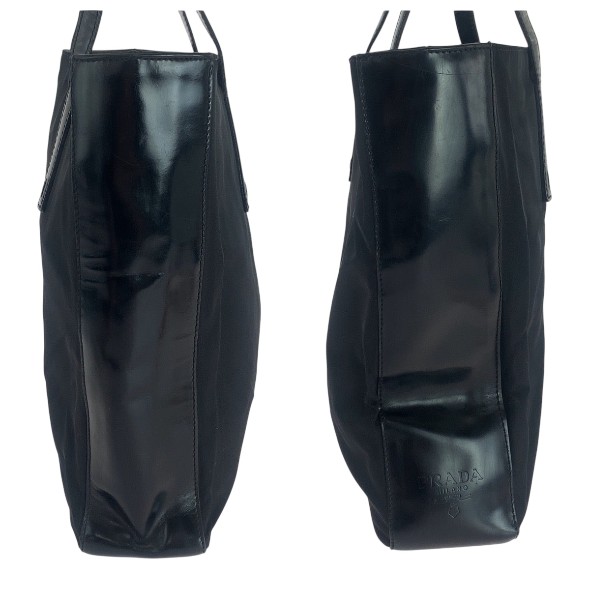 PRADA Tote Bag Nylon, Patent Leather Black SilverMetal Tote Bag Shoulder Bag Test logo Women Used Authentic