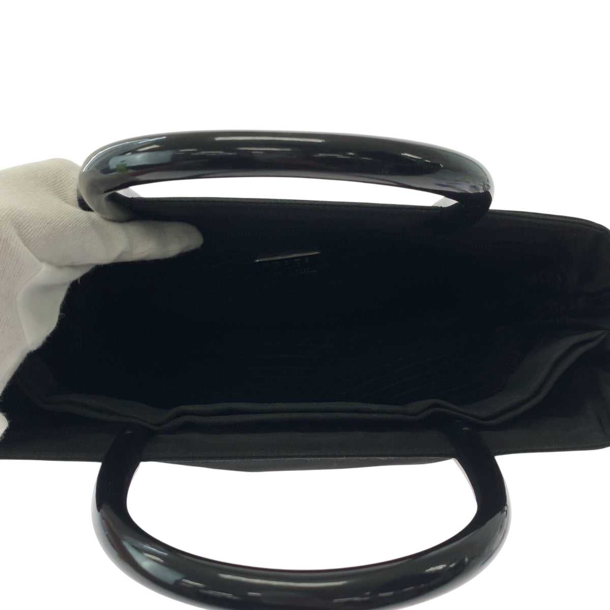 PRADA Tote Bag Nylon Black SilverMetal Tote Bag handbag Test Triangle With logo Women Used Authentic