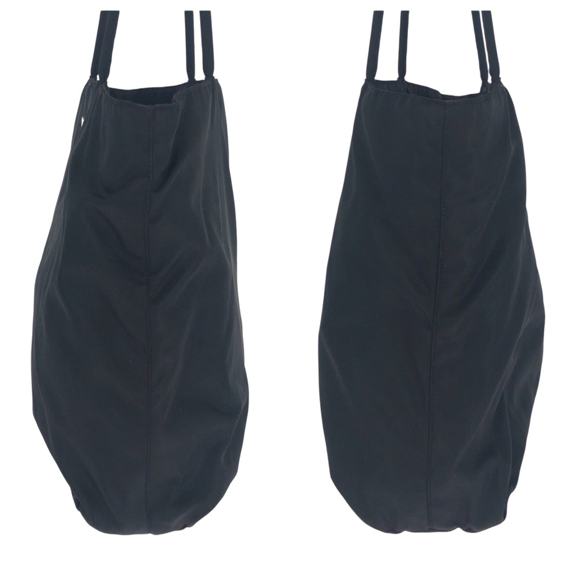 PRADA Tote Bag Nylon Black SilverMetal Tote Bag Shoulder Bag Test Triangle With logo Women Used Authentic