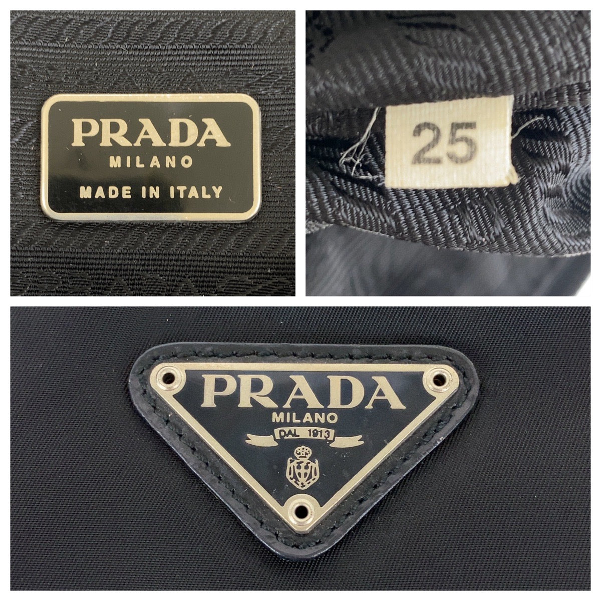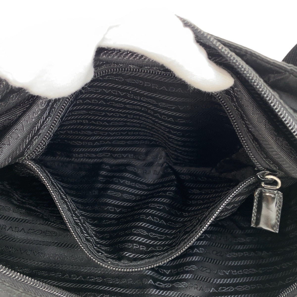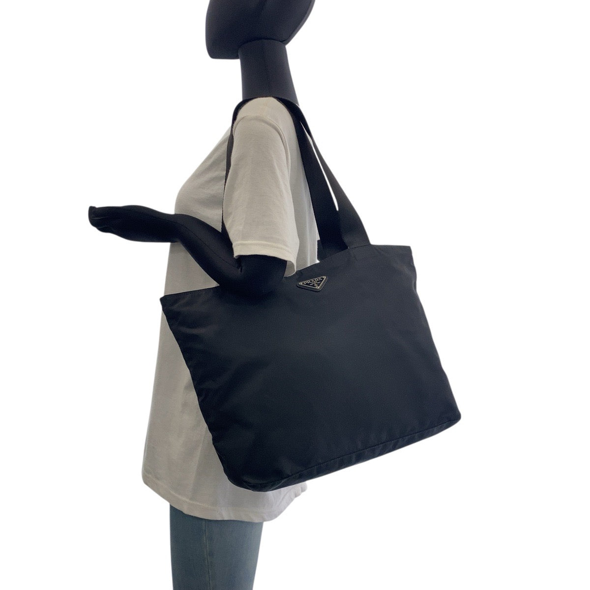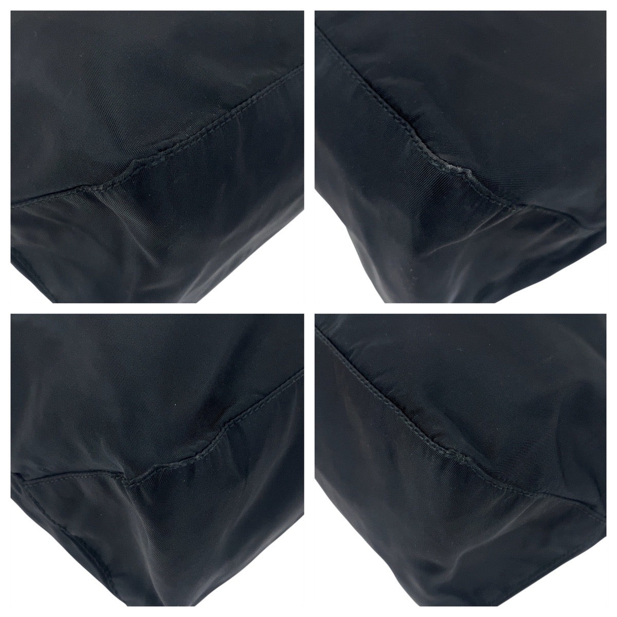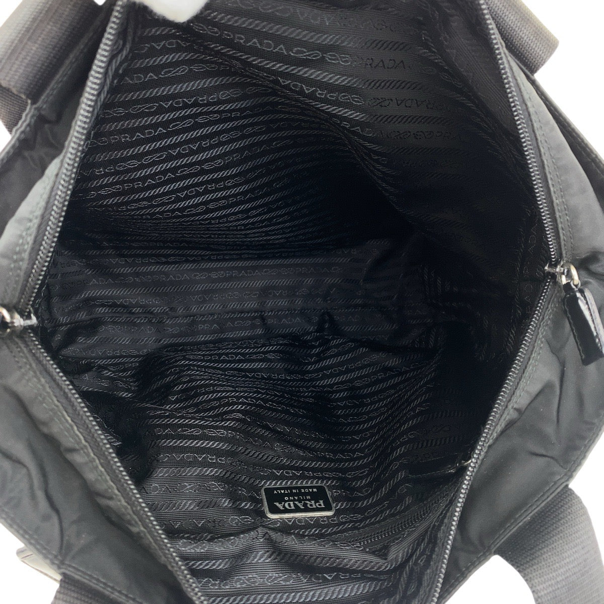 PRADA Tote Bag Nylon Black SilverMetal Tote Bag Shoulder Bag Test Triangle With logo Women Used Authentic