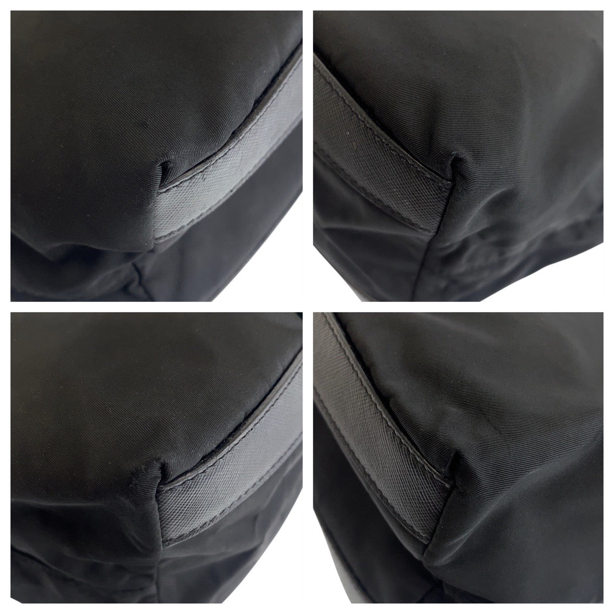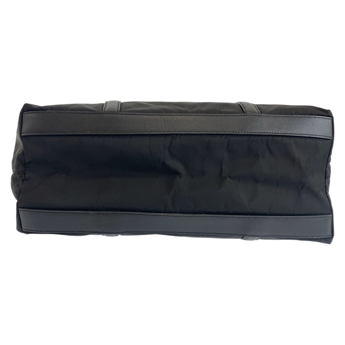 PRADA Tote Bag Nylon, Leather Black SilverMetal Tote Bag Shoulder Bag Test Triangle With logo Women Used Authentic