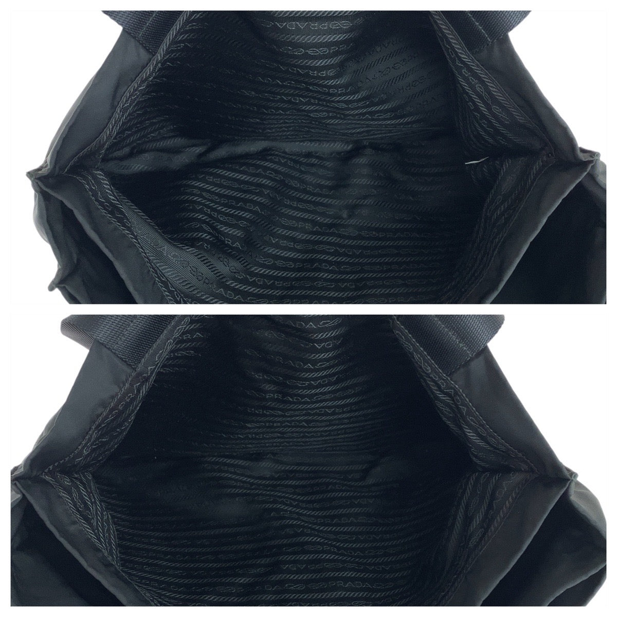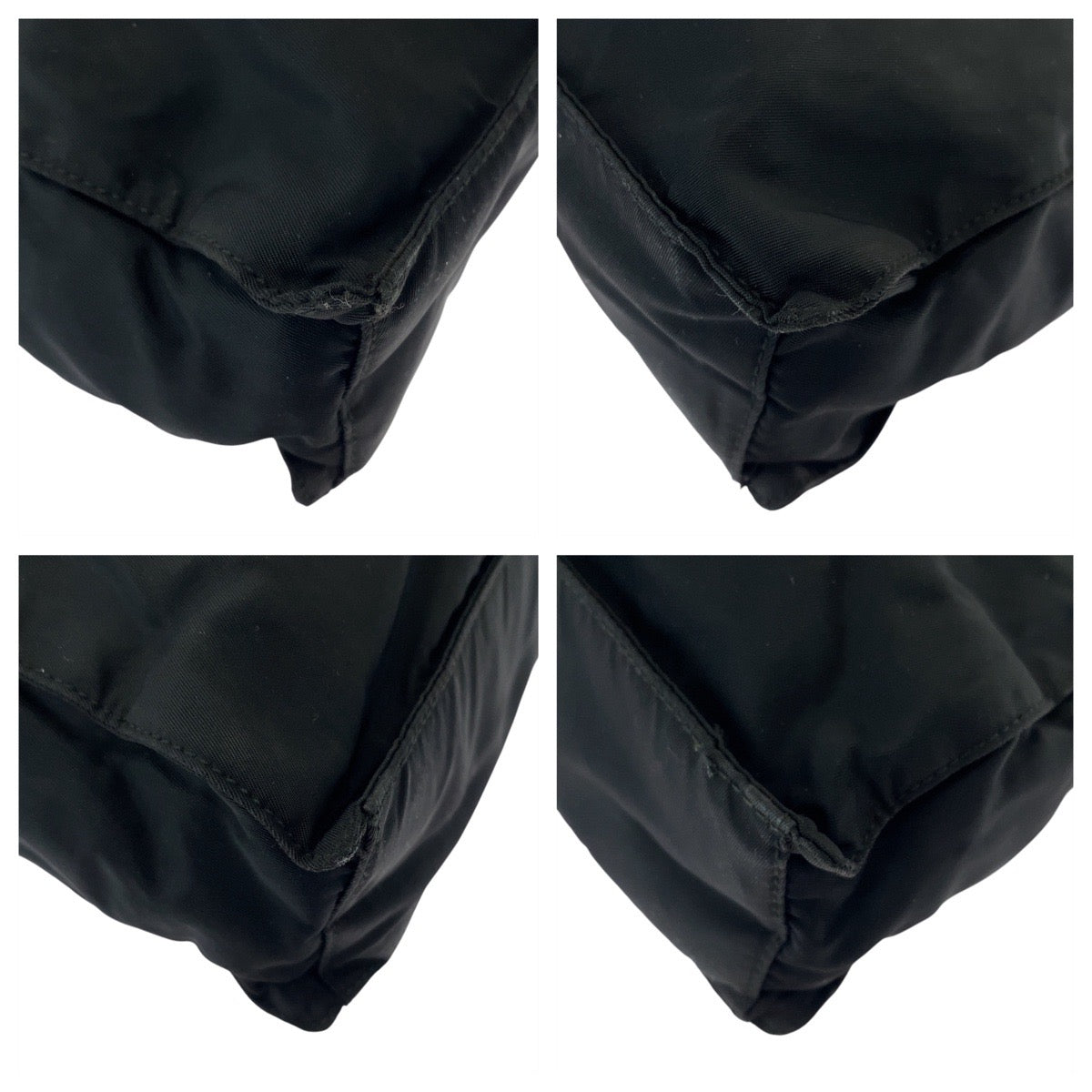 PRADA Tote Bag Nylon Black SilverMetal Tote Bag Shoulder Bag Unisex Test Triangle With logo Women Used Authentic