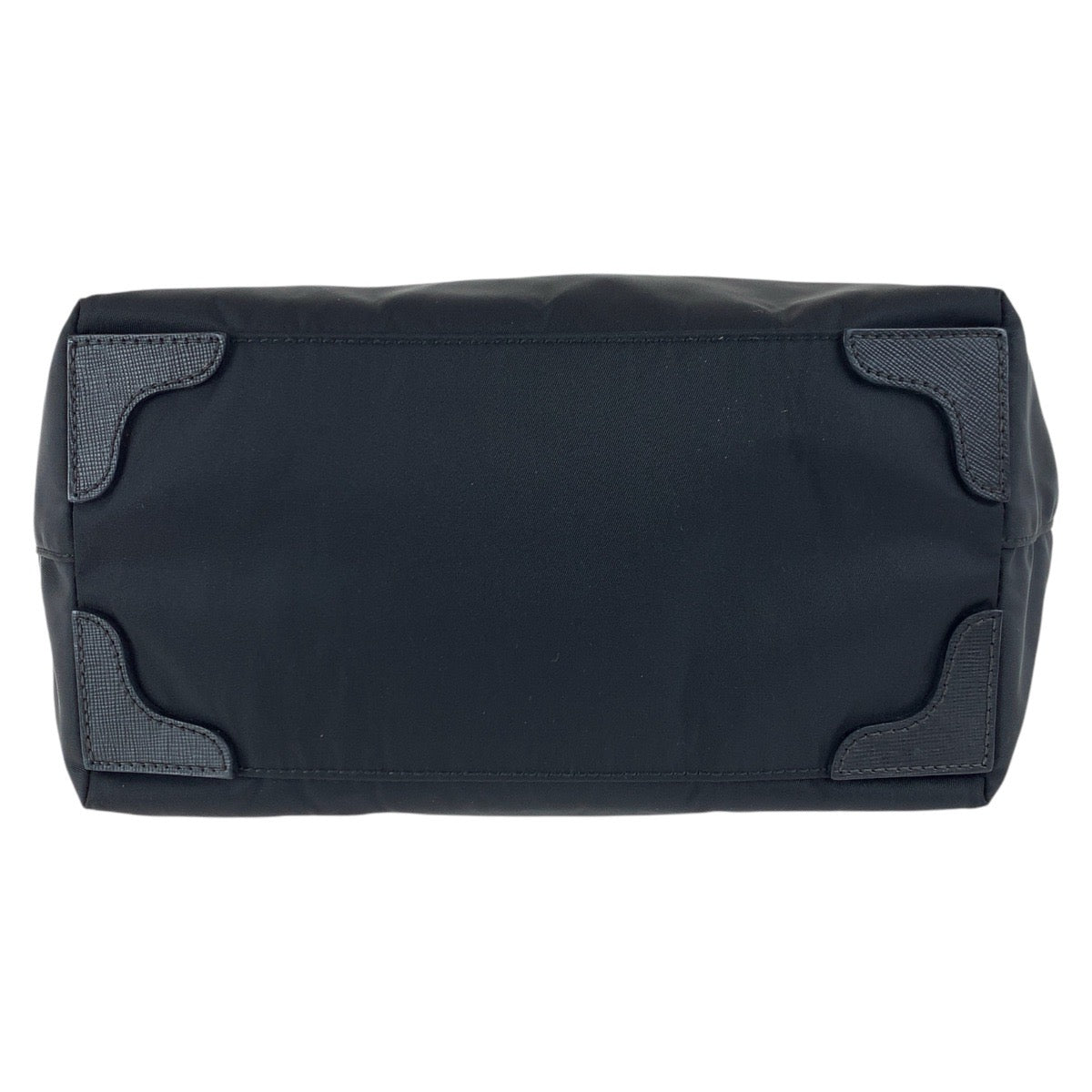 PRADA Tote Bag Nylon, Leather Black SilverMetal Tote Bag handbag Testo Saffiano Triangle With logo Women Used Authentic