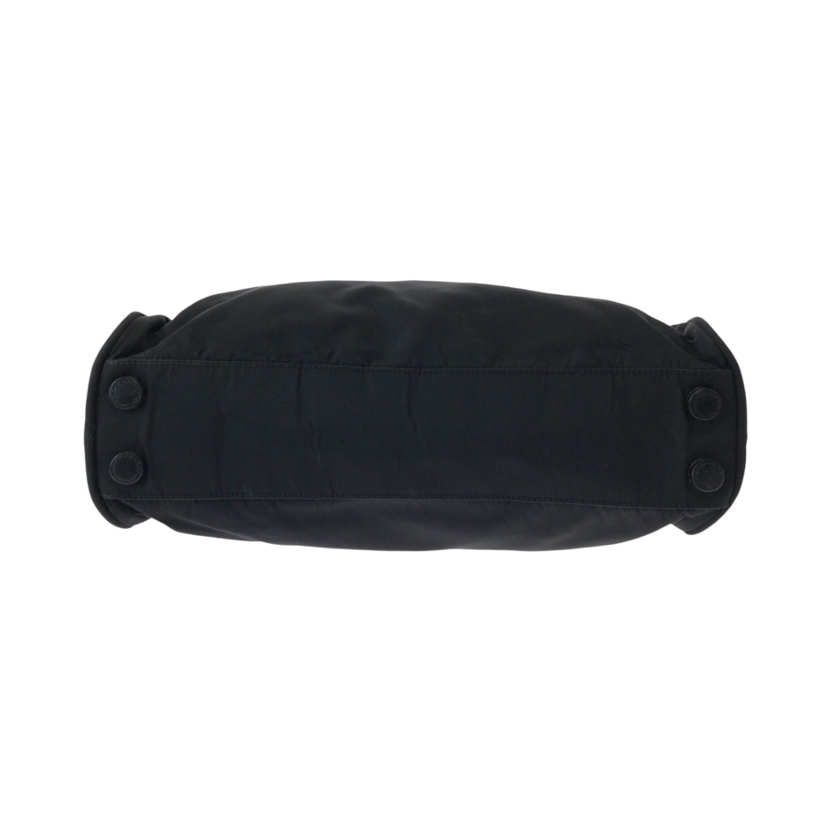 PRADA Tote Bag Nylon Black SilverMetal Tote Bag Shoulder Bag Test Triangle With logo Women Used Authentic