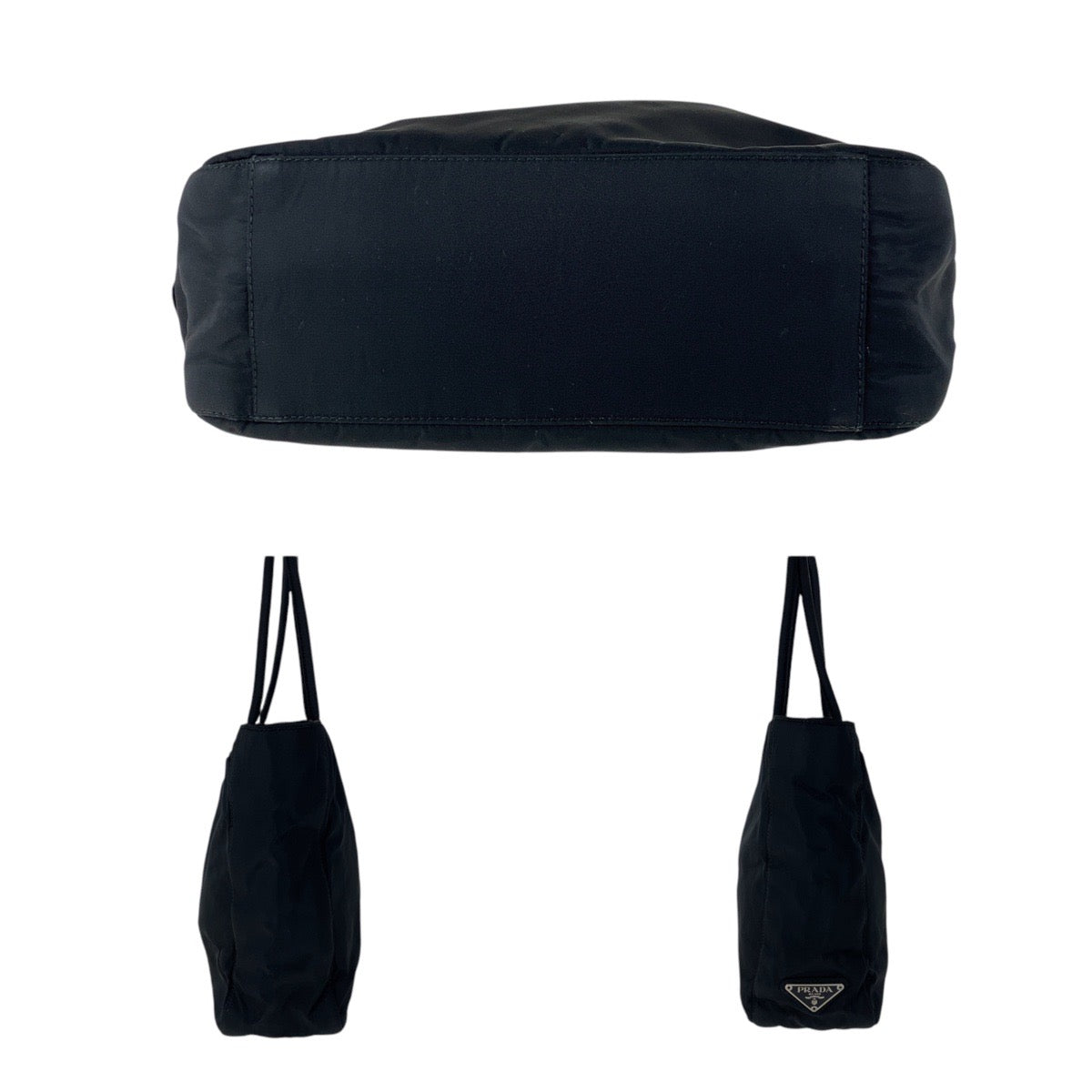 PRADA Tote Bag Nylon Black SilverMetal Tote Bag Shoulder Bag Test Triangle With logo Women Used Authentic