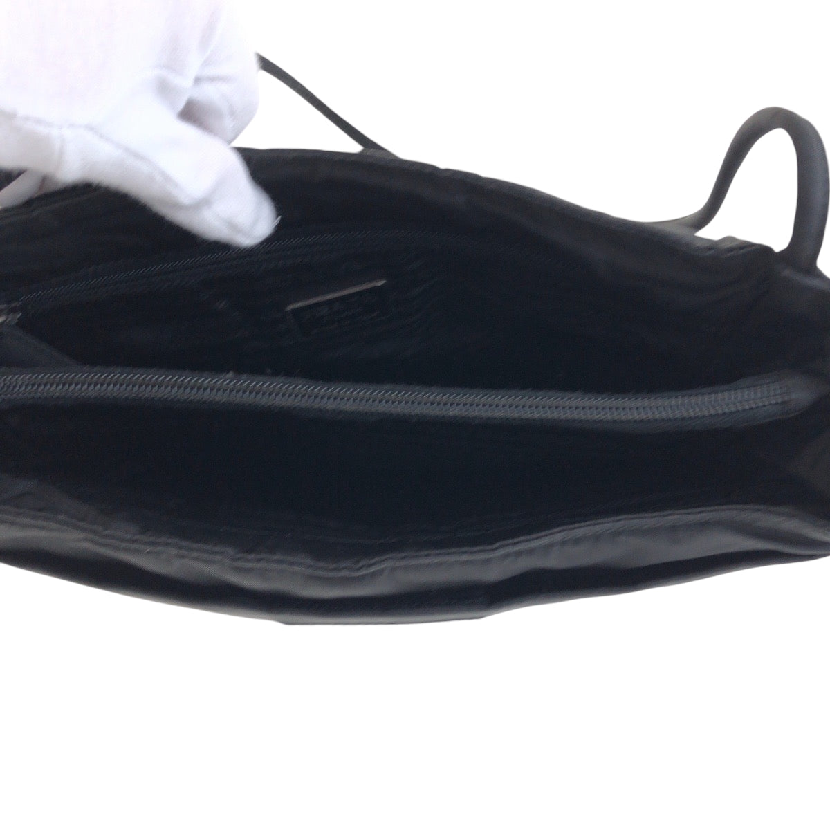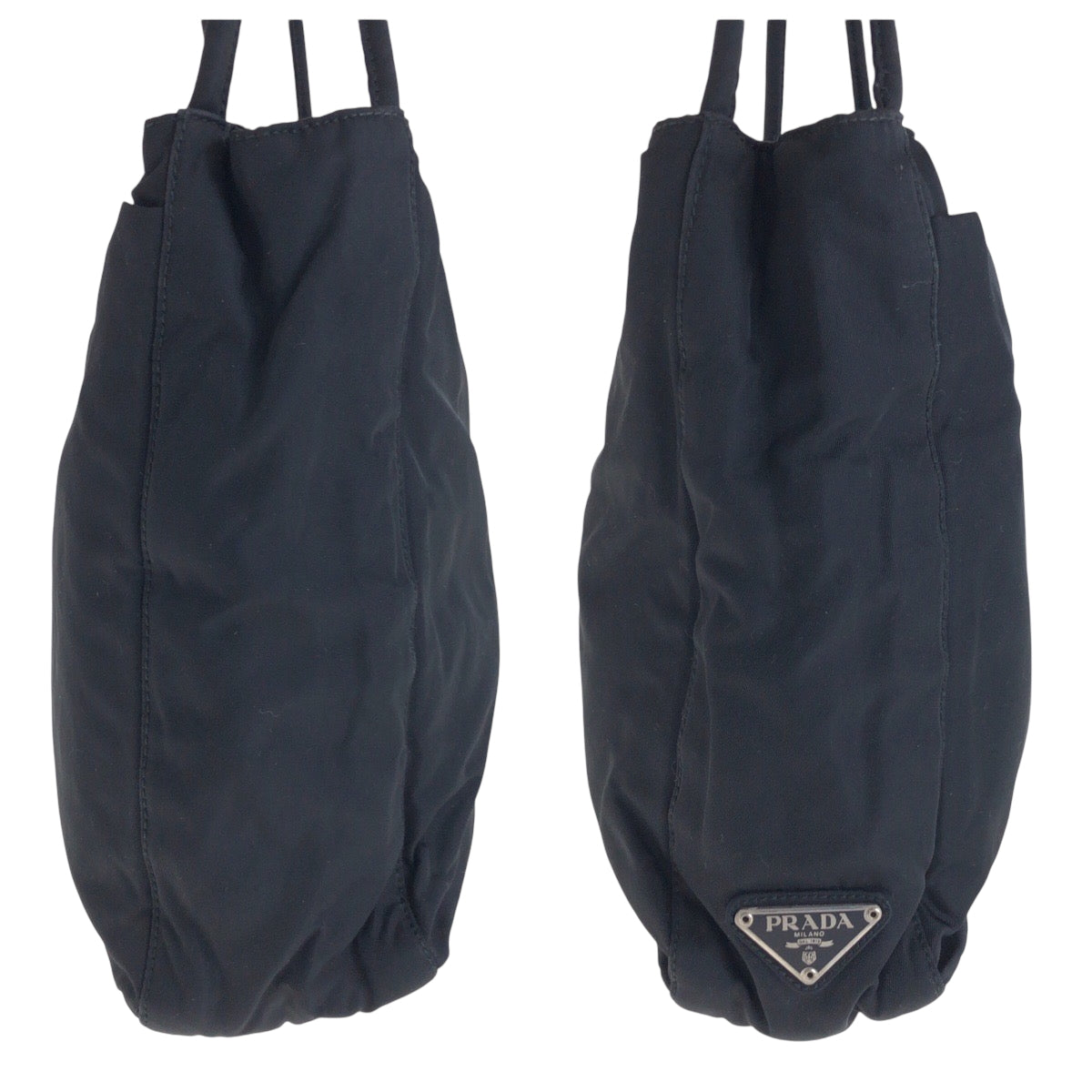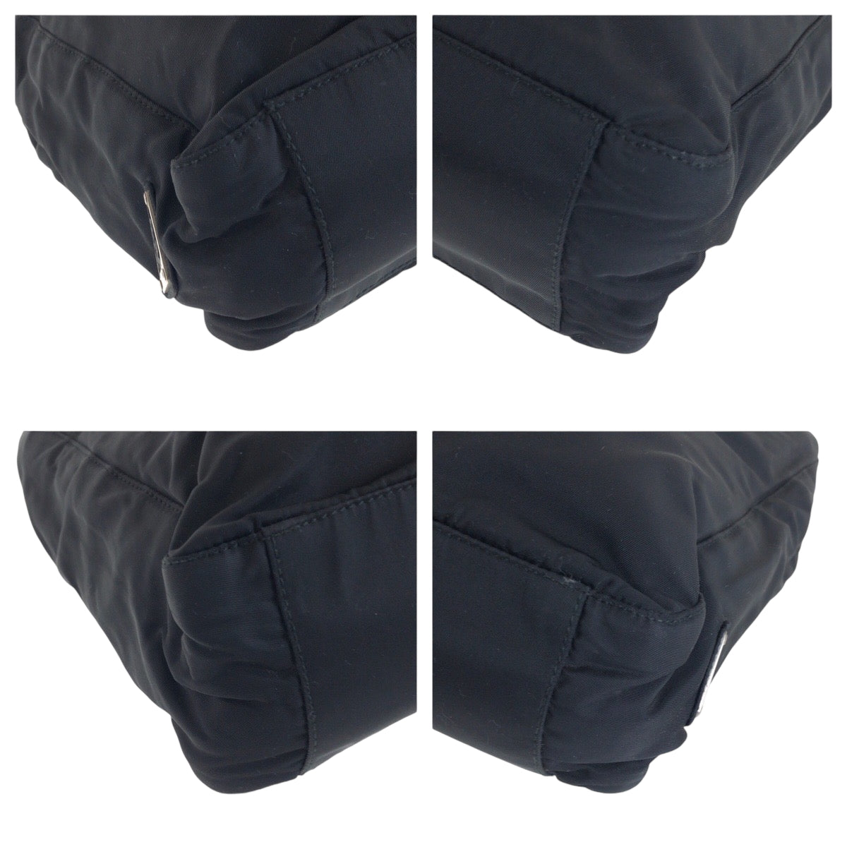 PRADA Tote Bag Nylon Black SilverMetal Tote Bag Shoulder Bag Test Triangle With logo Women Used Authentic