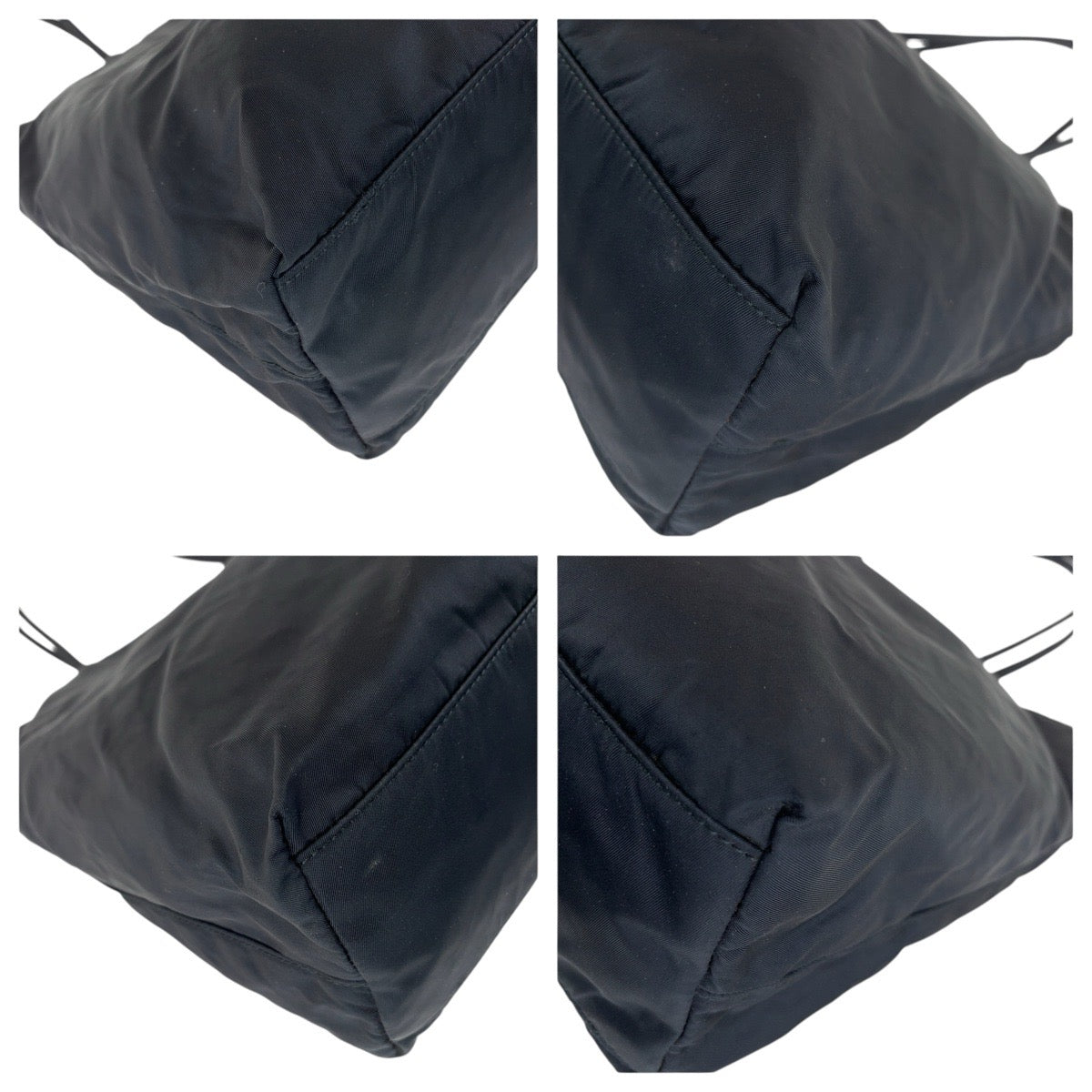 PRADA Tote Bag Nylon Black SilverMetal Tote Bag Shoulder Bag Test Triangle With logo Women Used Authentic