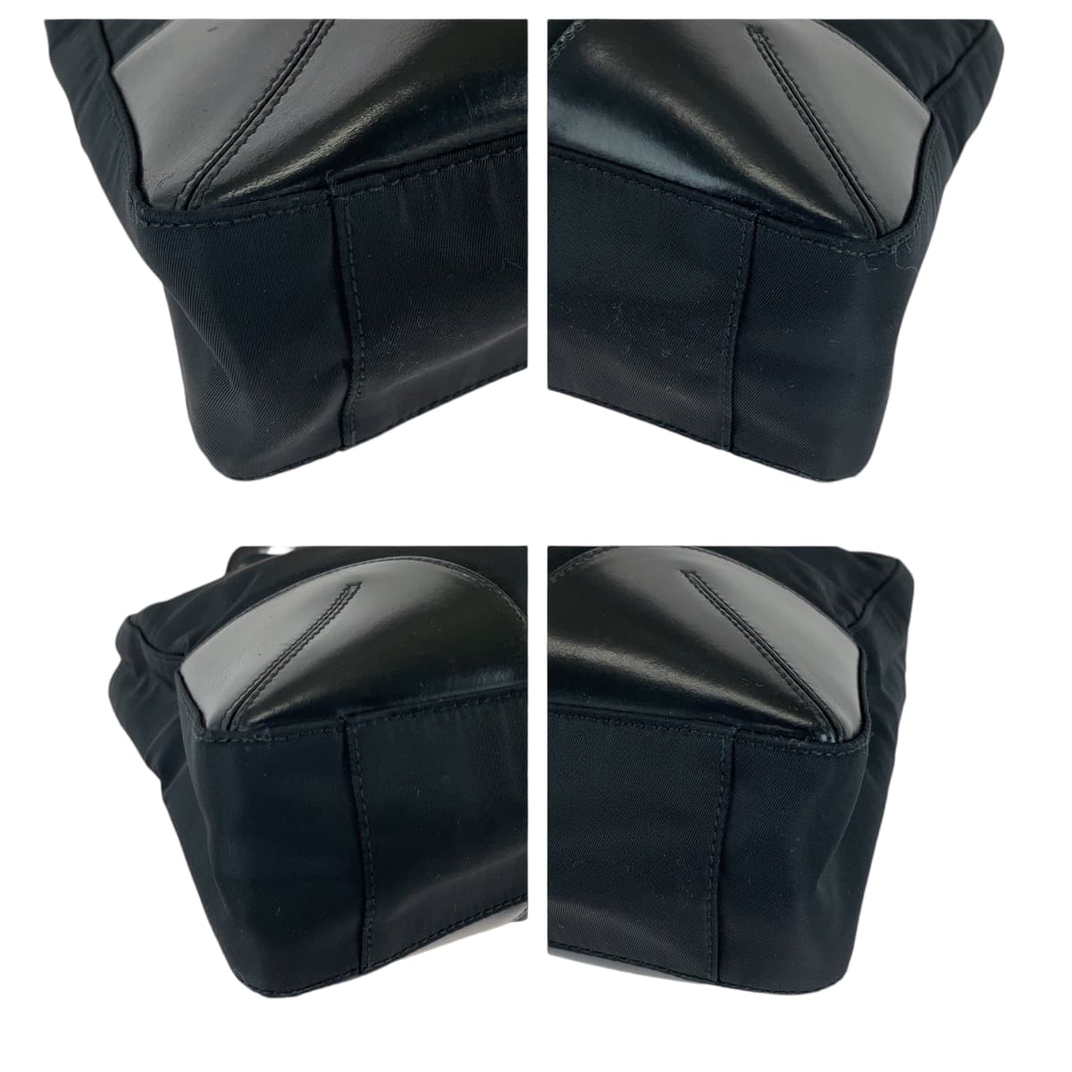 PRADA Tote Bag Nylon Black SilverMetal Tote Bag Shoulder Bag Triangle With logo Women Used Authentic