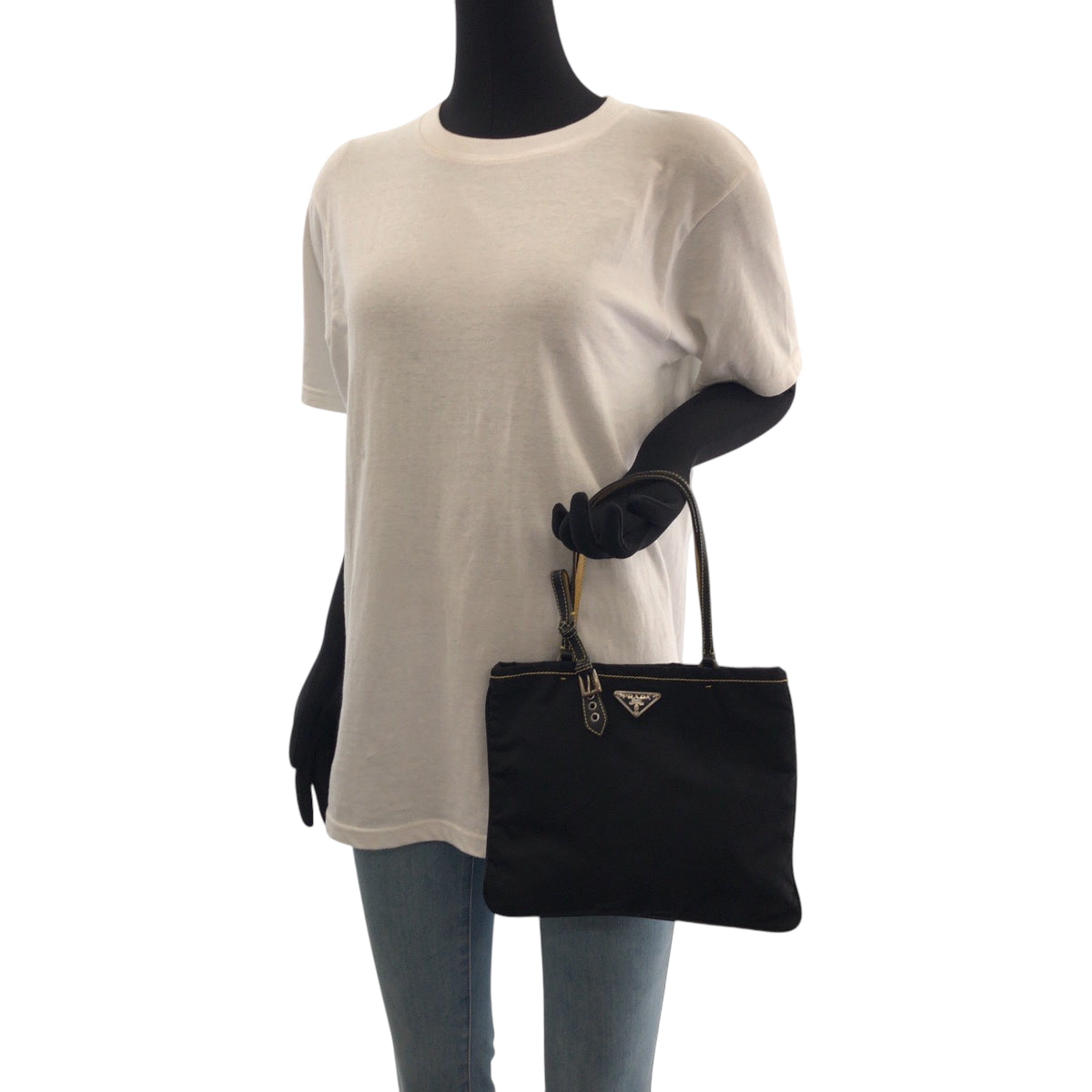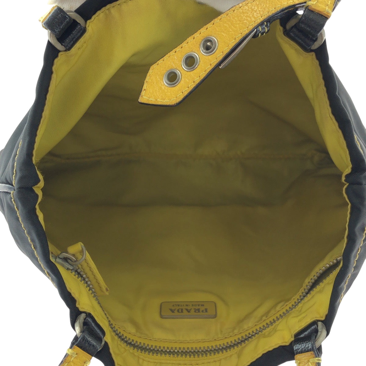 PRADA Tote Bag Nylon Black Yellow SilverMetal Tote Bag handbag Test Triangle With logo Women Used Authentic