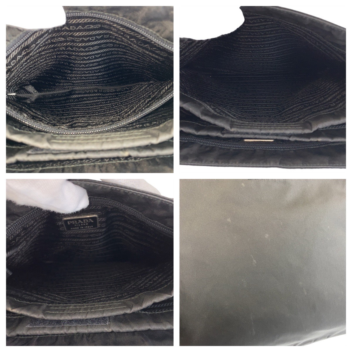 PRADA Tote Bag Nylon BlackSilverMetal Tote Bag Shoulder Bag Test Triangle With logo Women Used Authentic