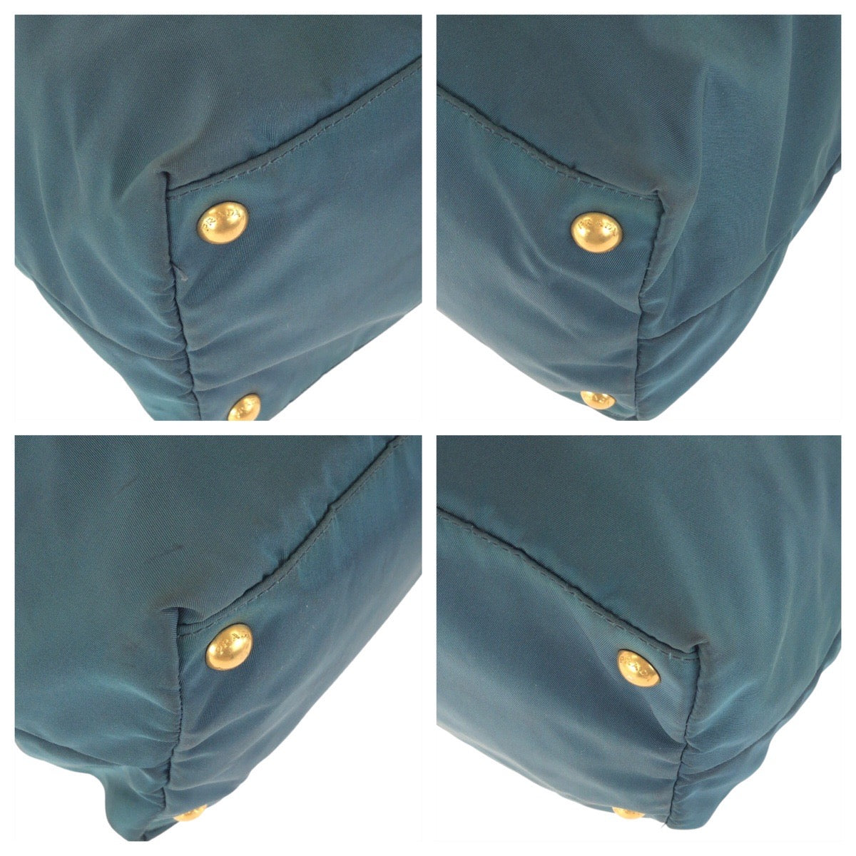 PRADA Tote Bag Nylon, Leather Green Navy Gold Metal Tote Bag Shoulder Bag 2way Test Triangle With logo Women Used Authentic