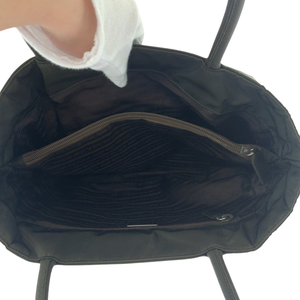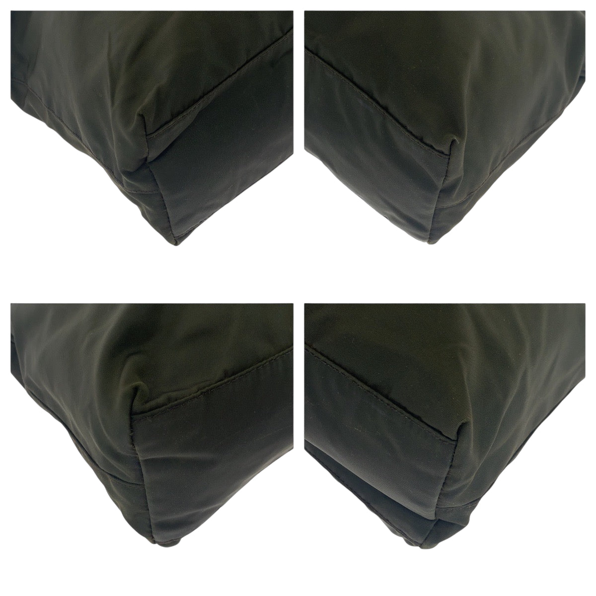PRADA Tote Bag Nylon Khaki SilverMetal Tote Bag Shoulder Bag Test Triangle With logo Women Used Authentic