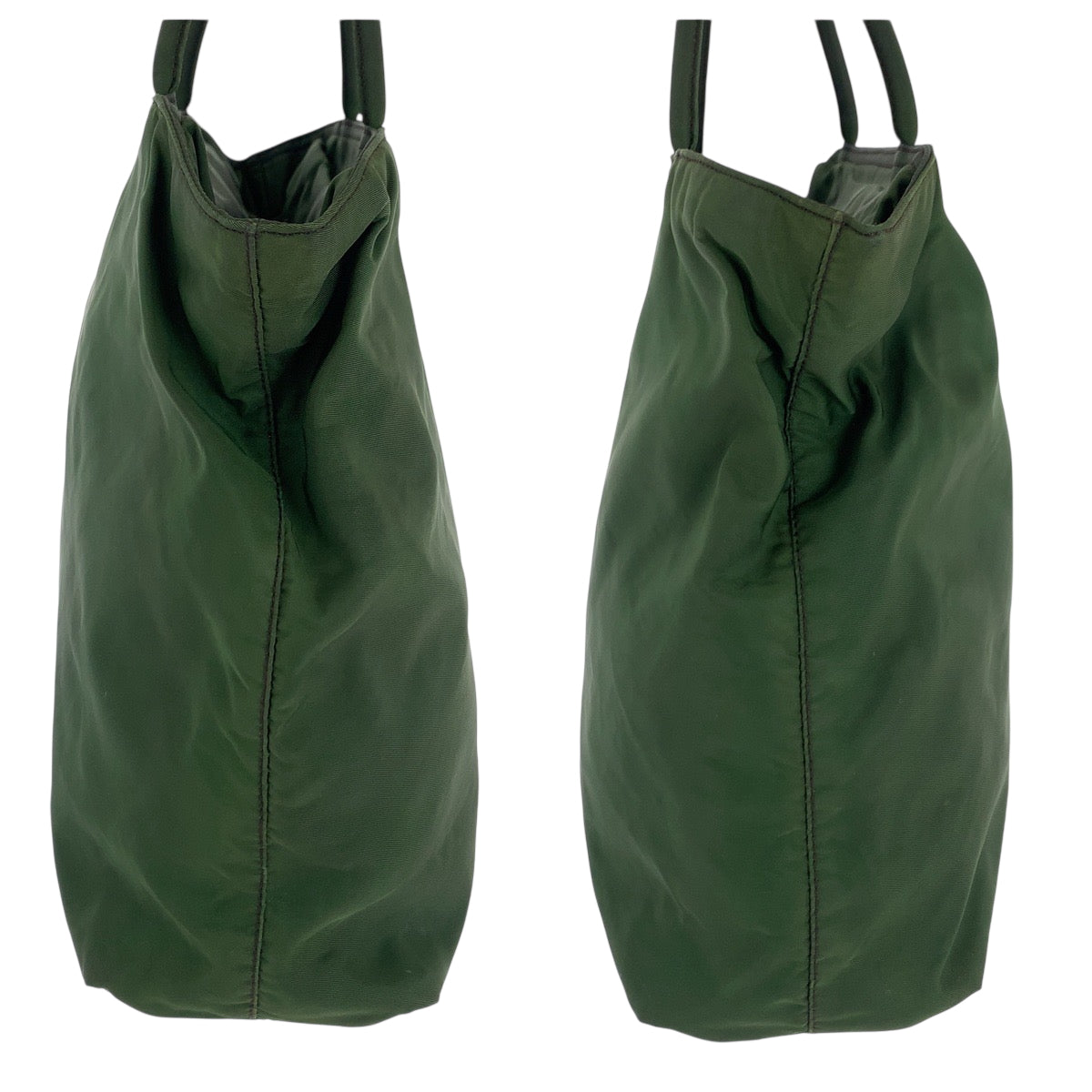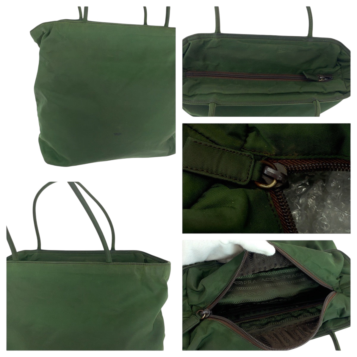 PRADA Tote Bag Nylon Khaki SilverMetal Tote Bag handbag Test Triangle With logo Women Used Authentic