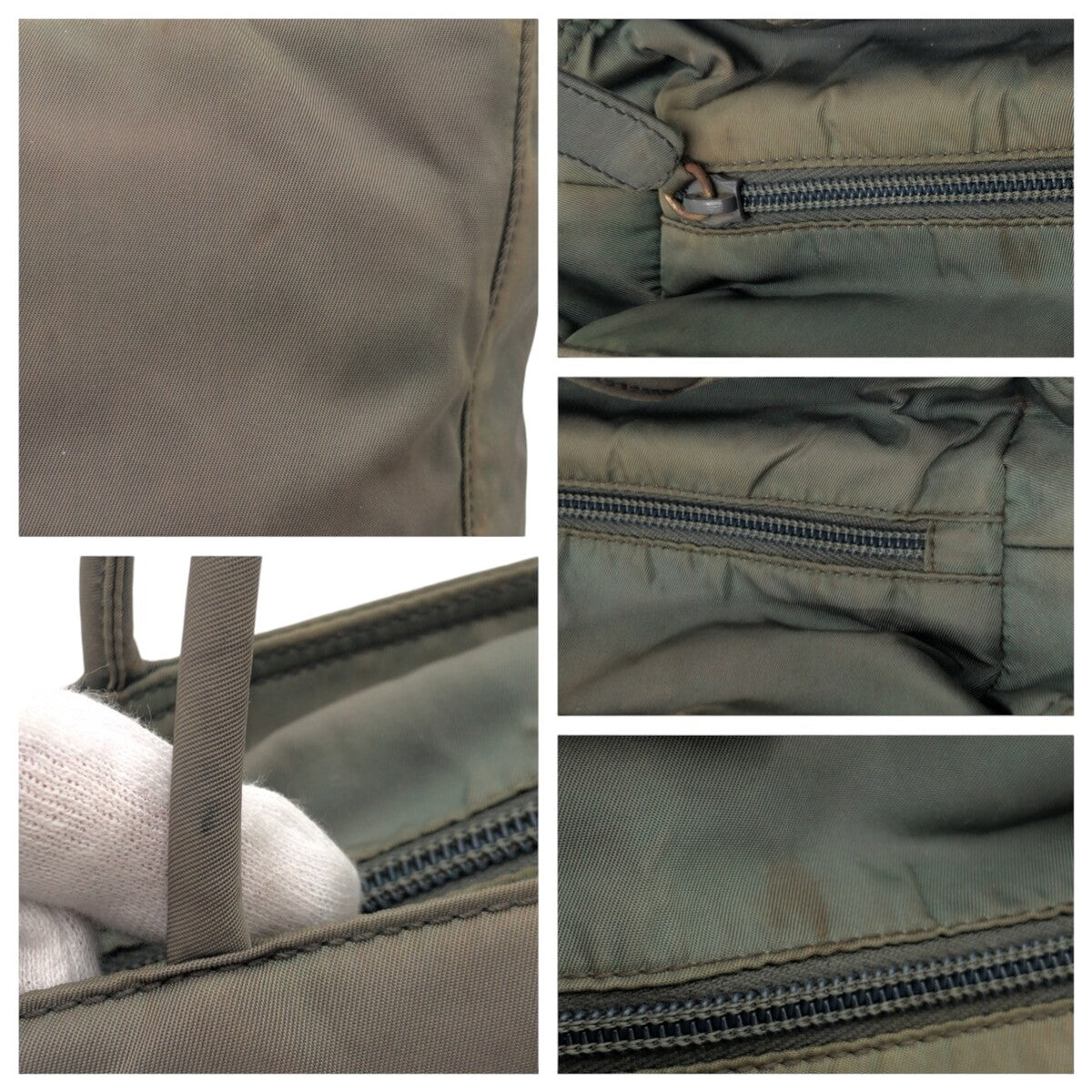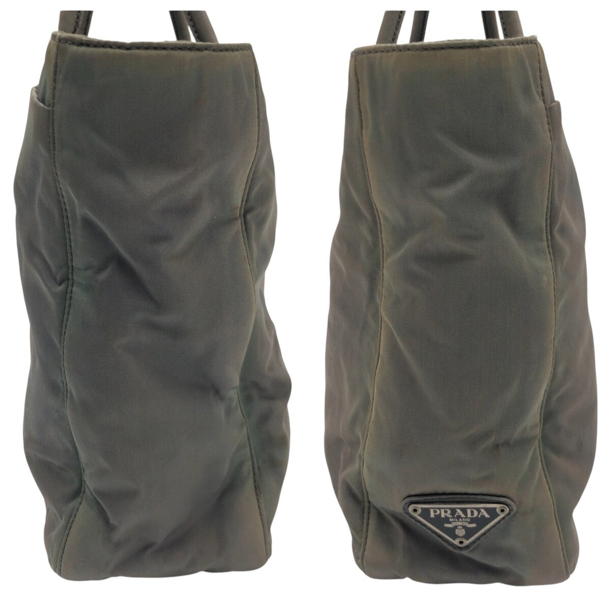 PRADA Tote Bag Nylon khaki Tote Bag handbag Triangular logo Women Used Authentic