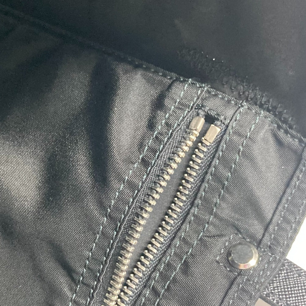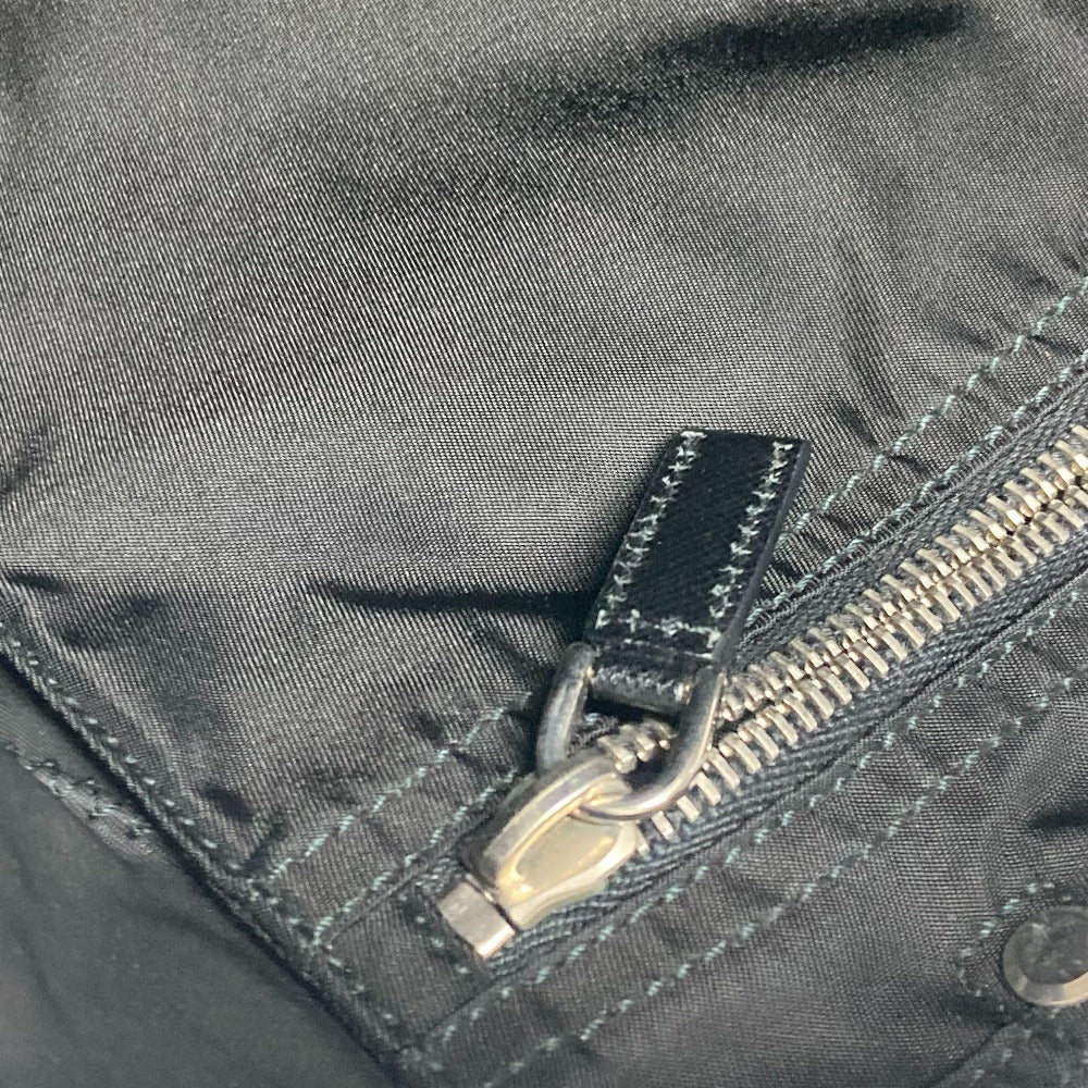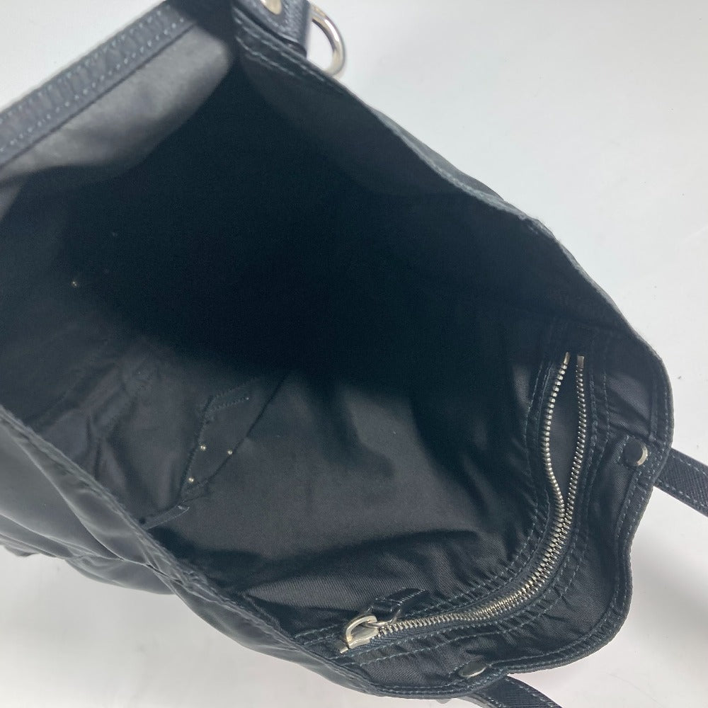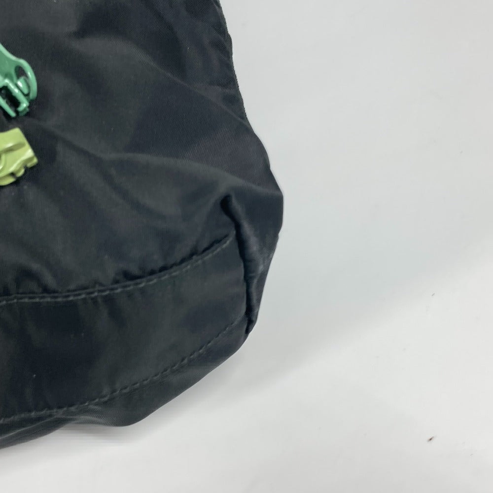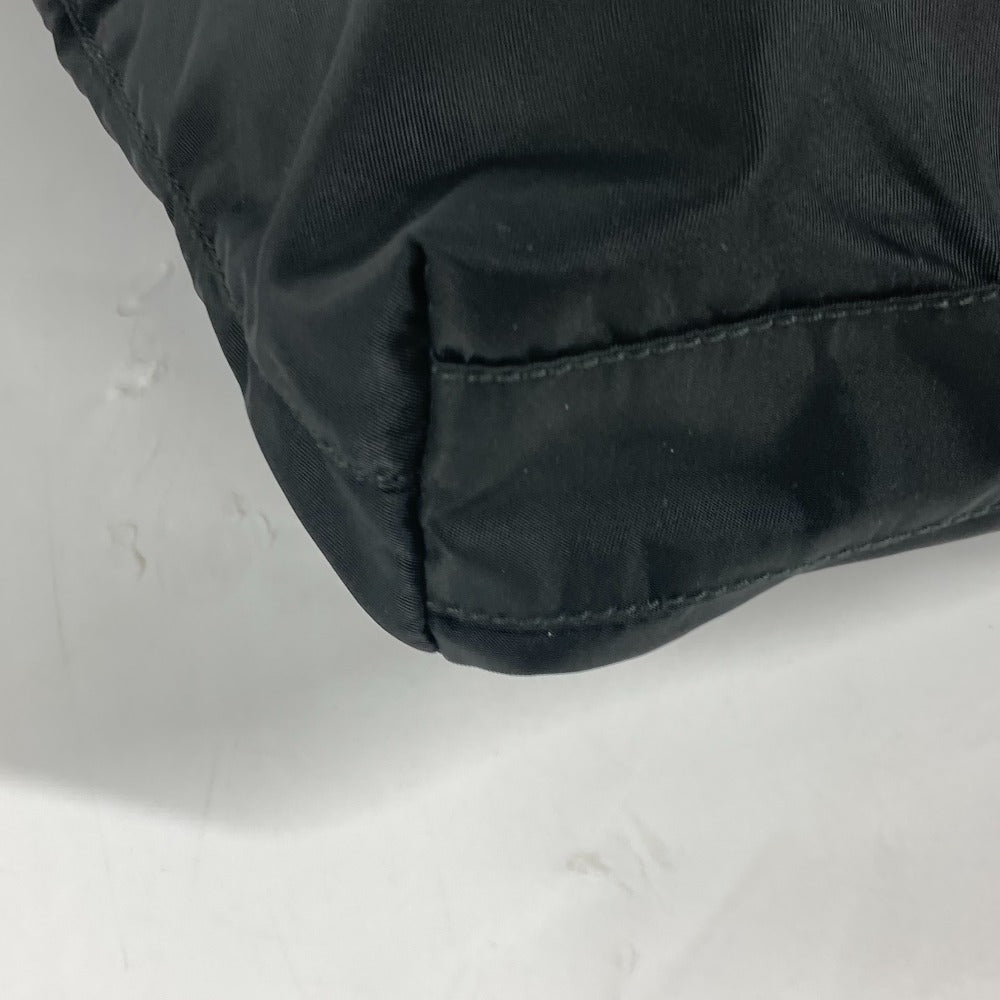 PRADA Tote Bag Nylon, Leather black Embroidery Flower Metal Flower