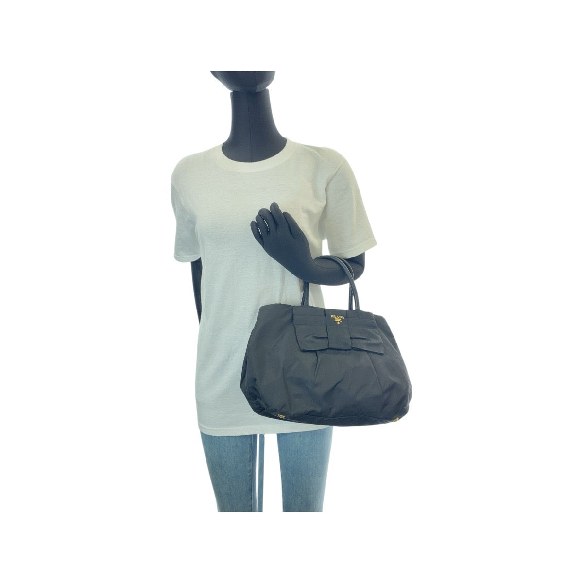 PRADA Tote Bag Nylon, Leather Black Pink Gold Metal Tote Bag handbag Test ribbon Women Used Authentic